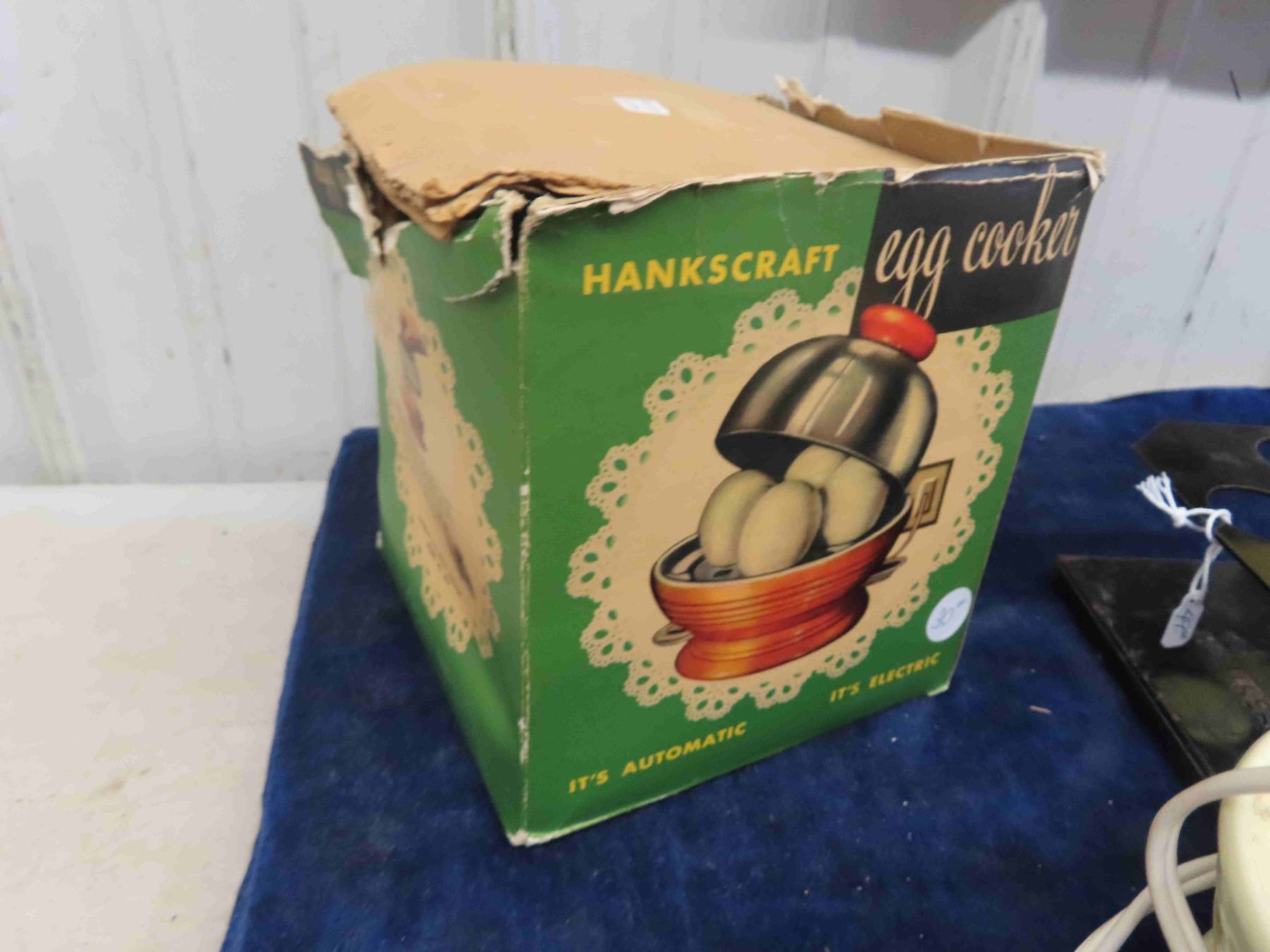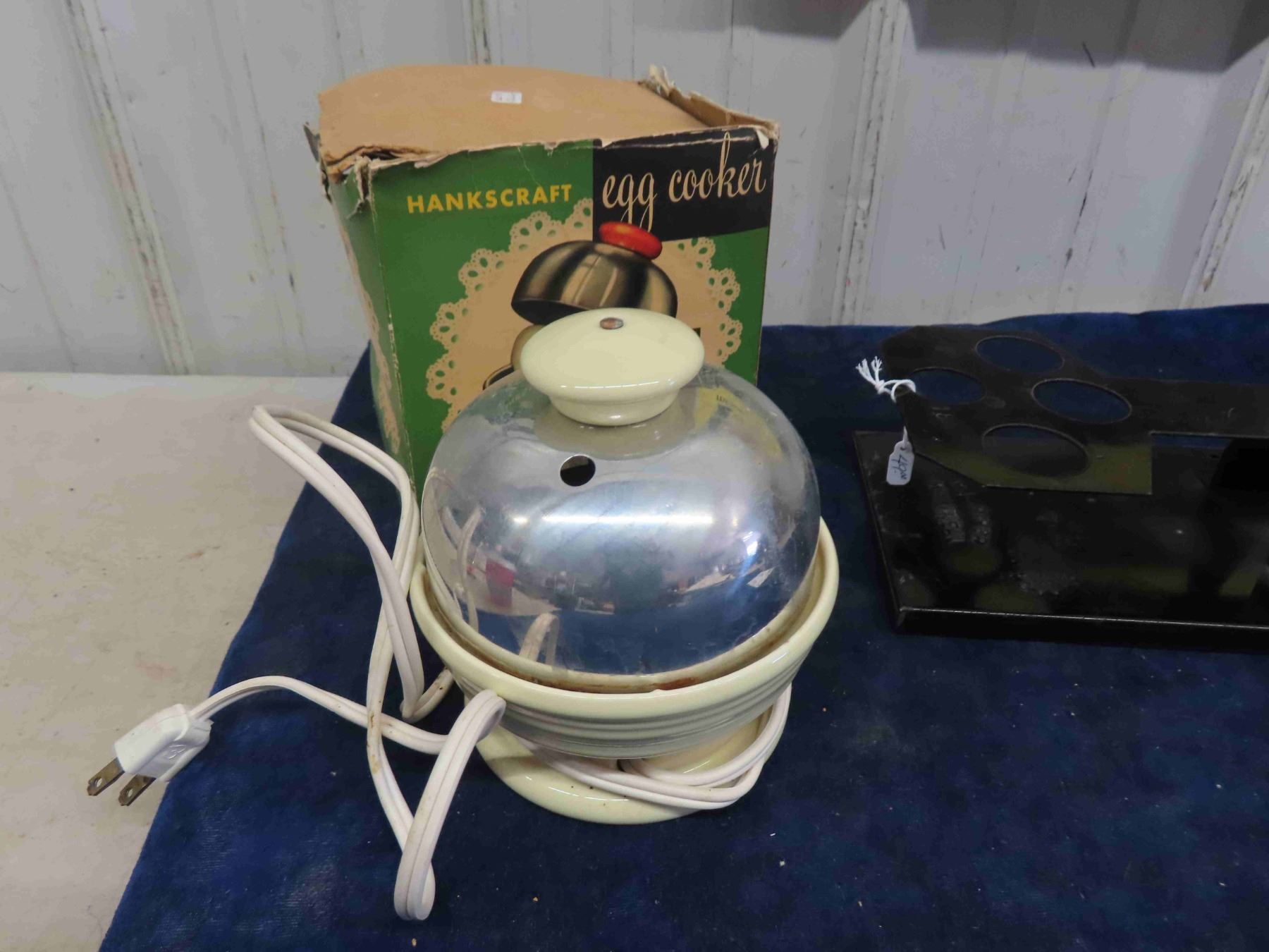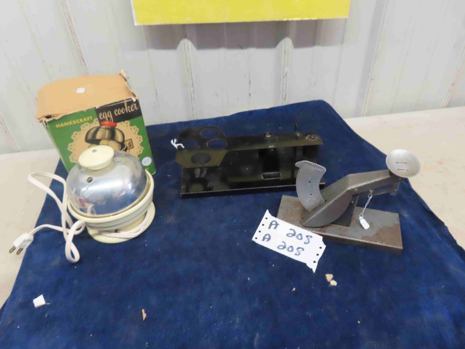 2 Egg Scales ; Clipper + Unique, Hankscraft Egg Cooker with Box - Good on Side Top Lid Missing