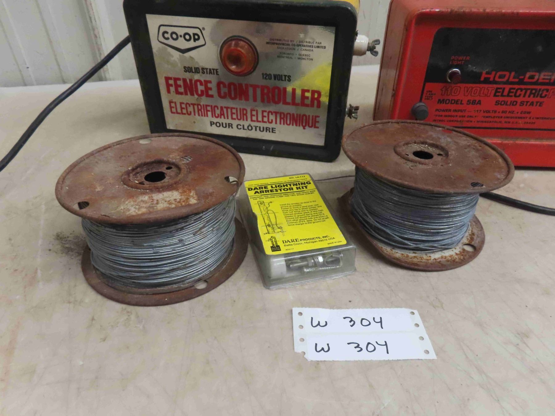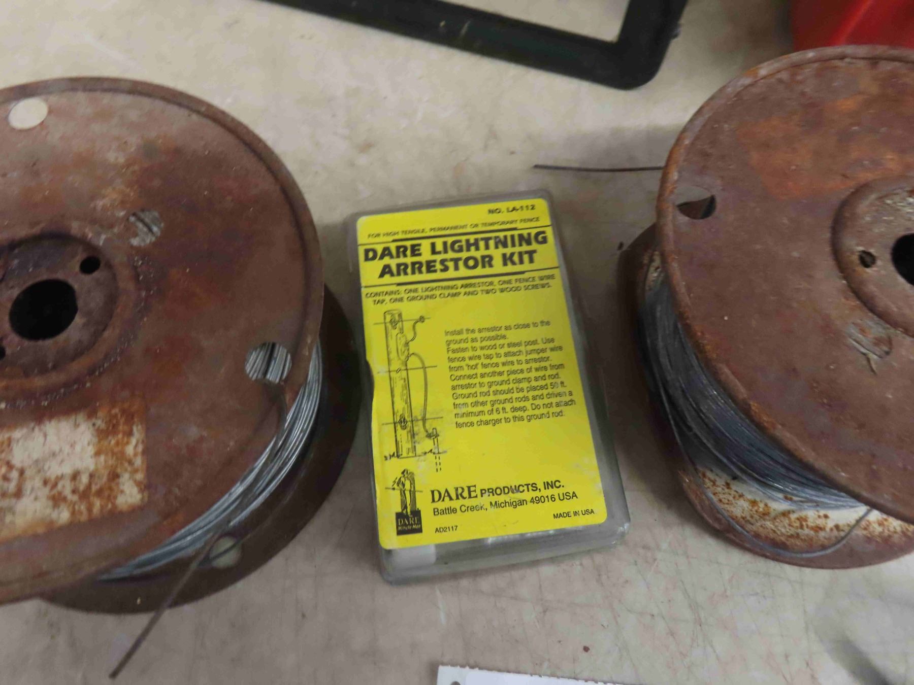 2 Electric Fencers (1) Co Op (1) Hol-dem , 2 Rolls of Electric Wire, Lighting Arrester Kit