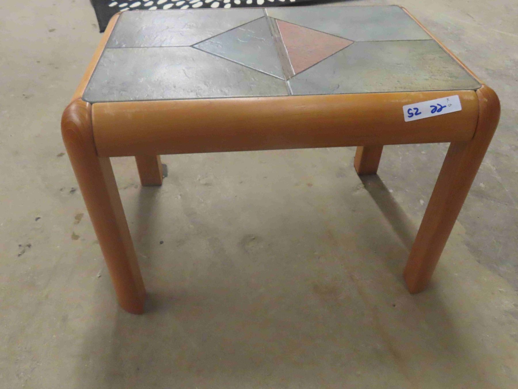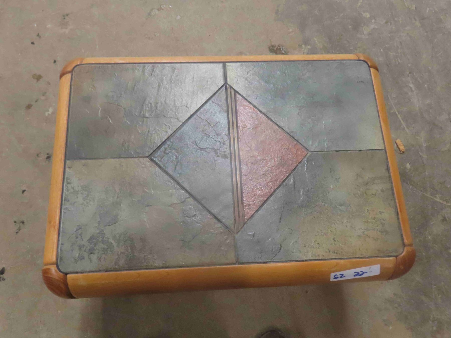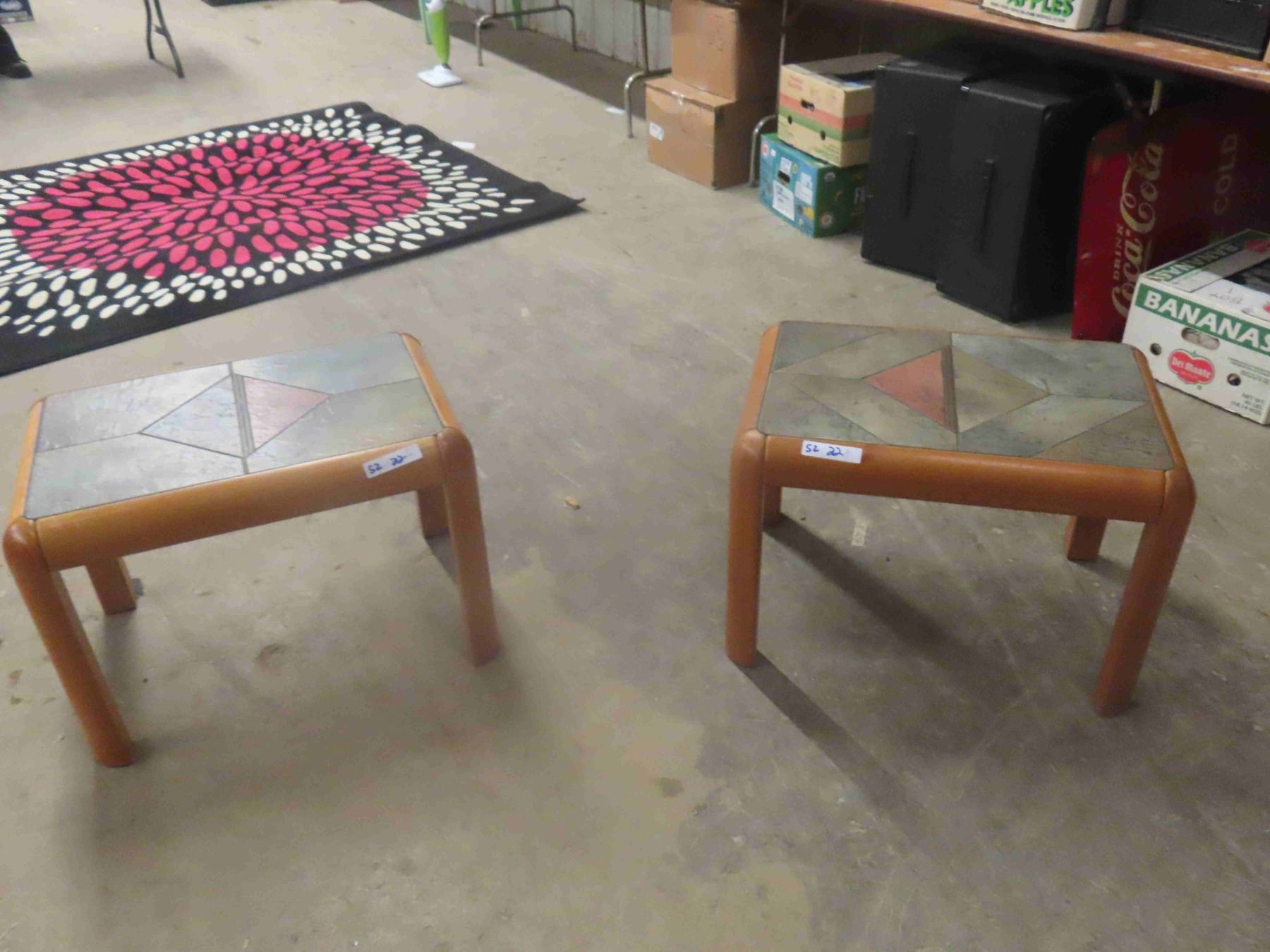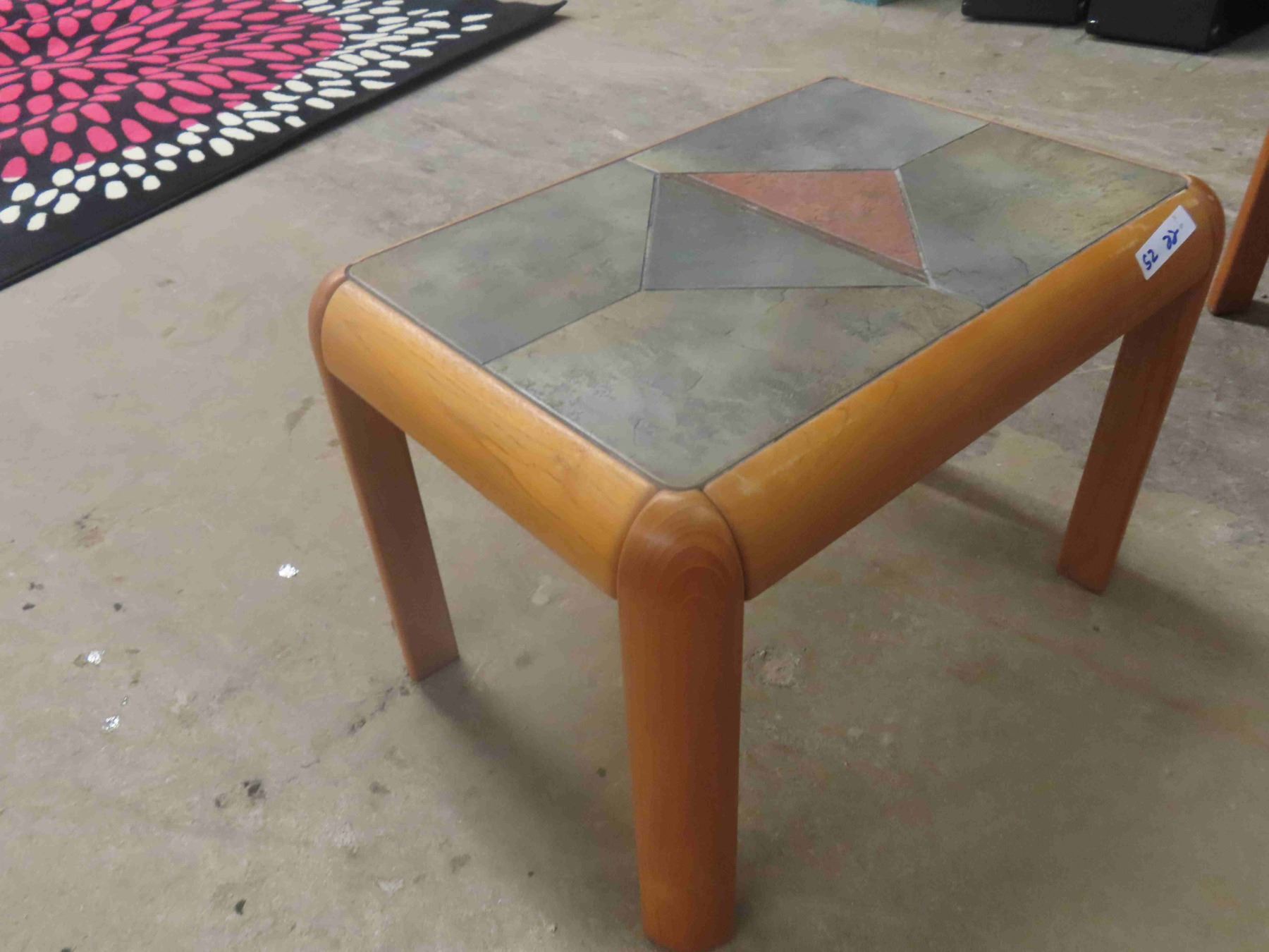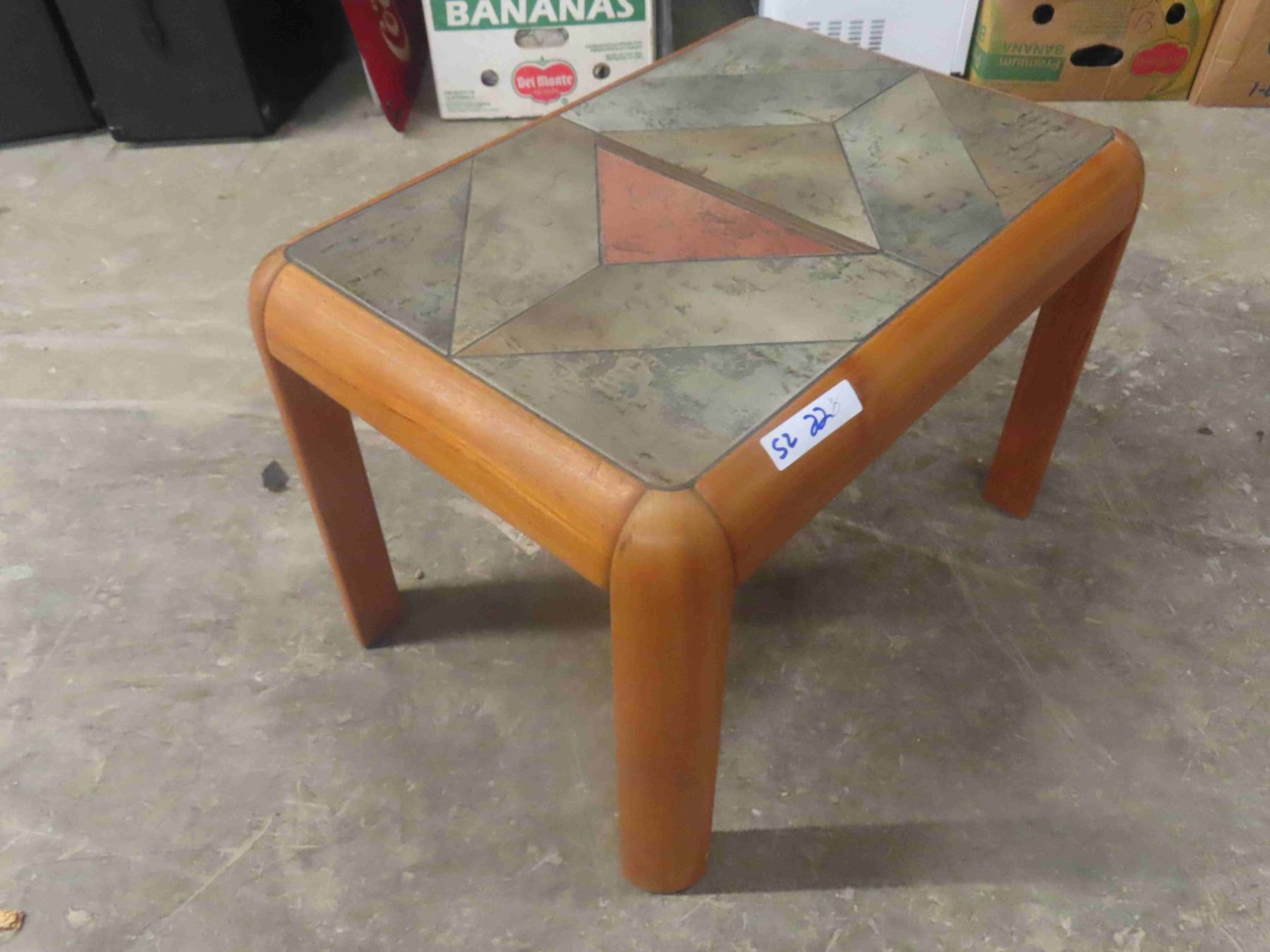 2 End Tables - Teak with Slate Top 19" x 19" x 27"