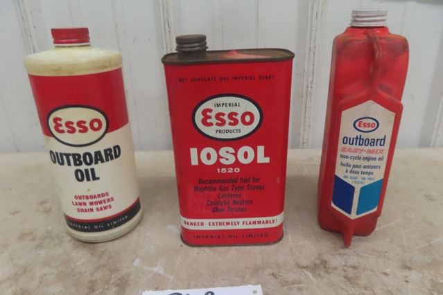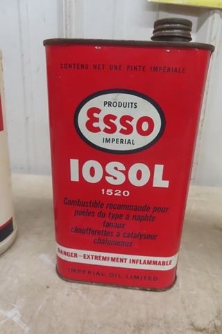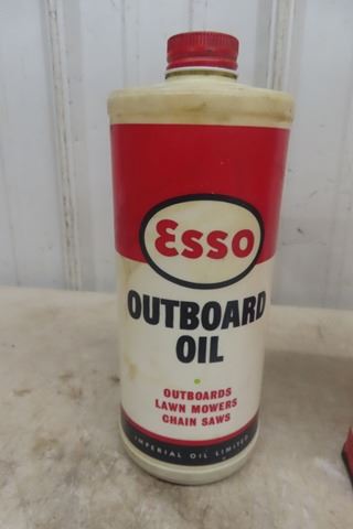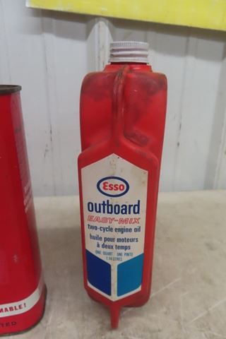 2 Esso Outboard Motor Oil Plastic Bottles, Esso Iosol 1 Imperial Quart Tin
