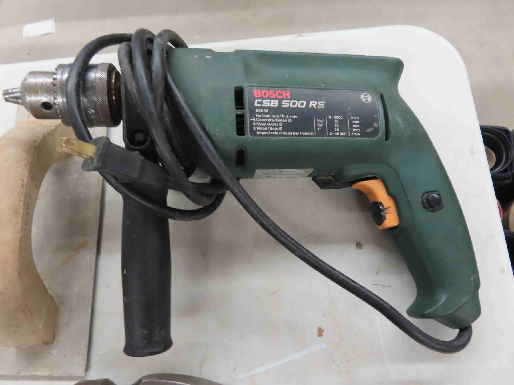 2 Estwing Hammers, Bosch Electric Drill, Various Hand Tools