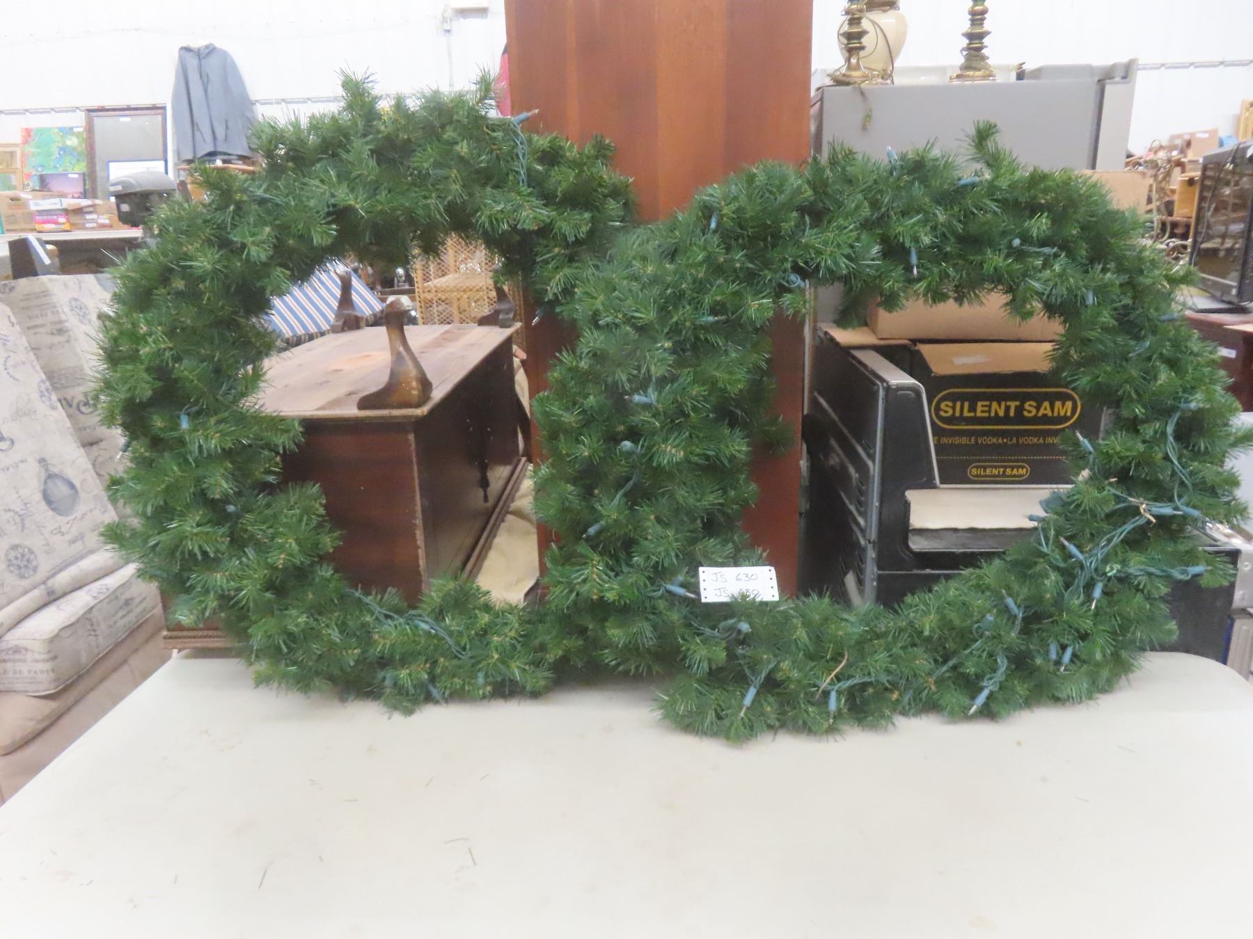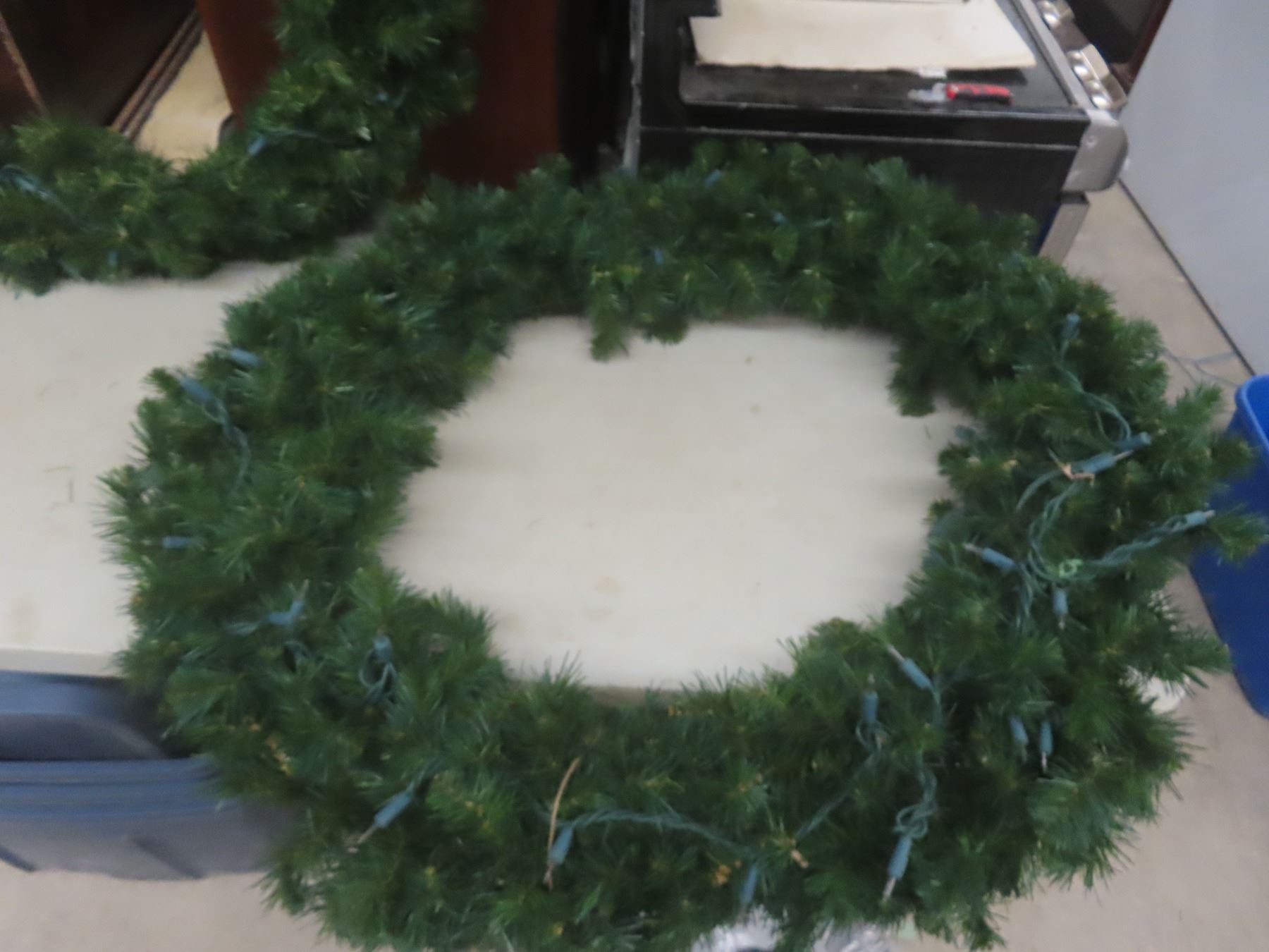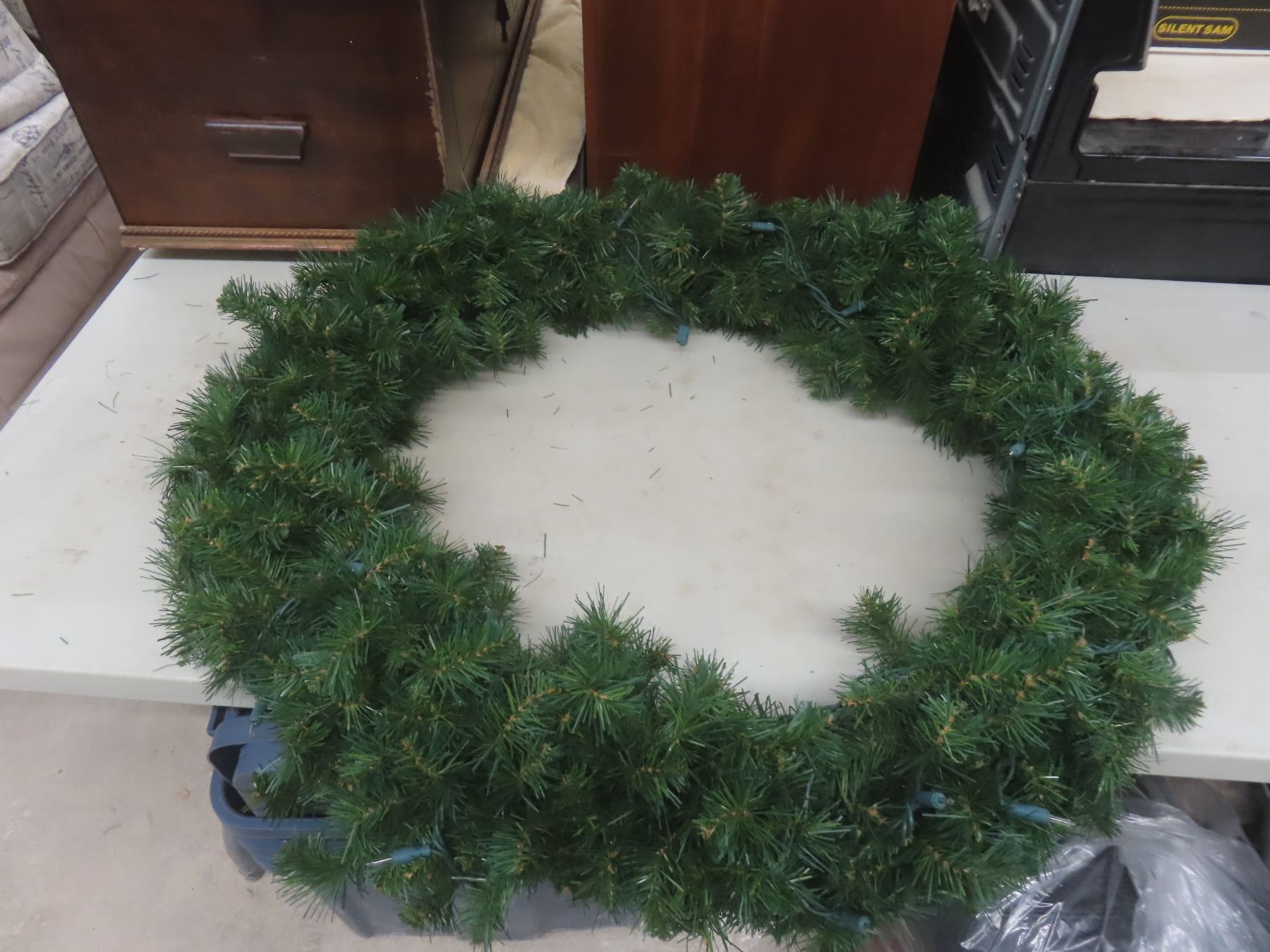 2 Extra-Large Christmas Wreaths With Lights, 36" Diameter.