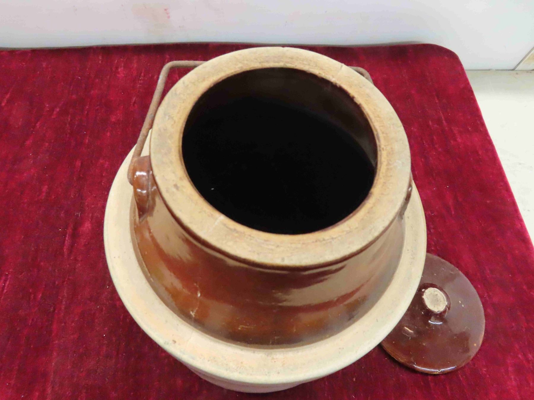 2 Finger Stoneware Jugs and Pickle Crock