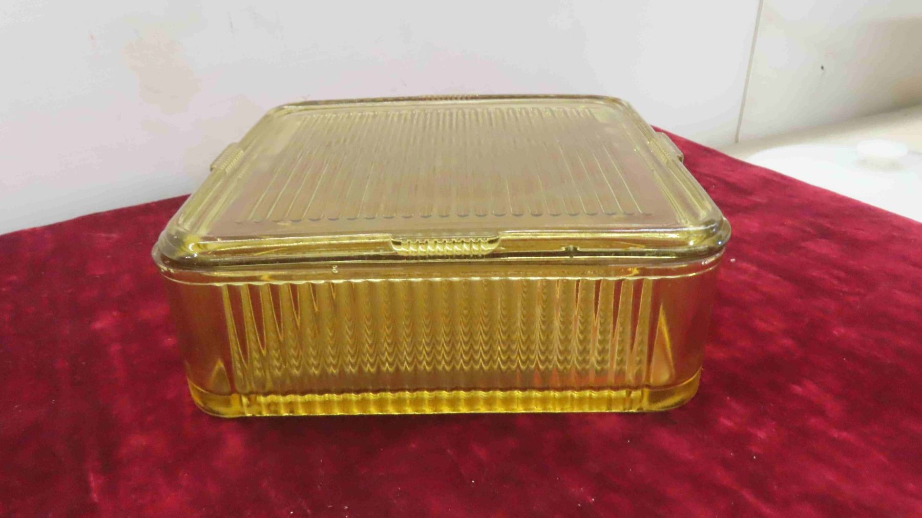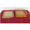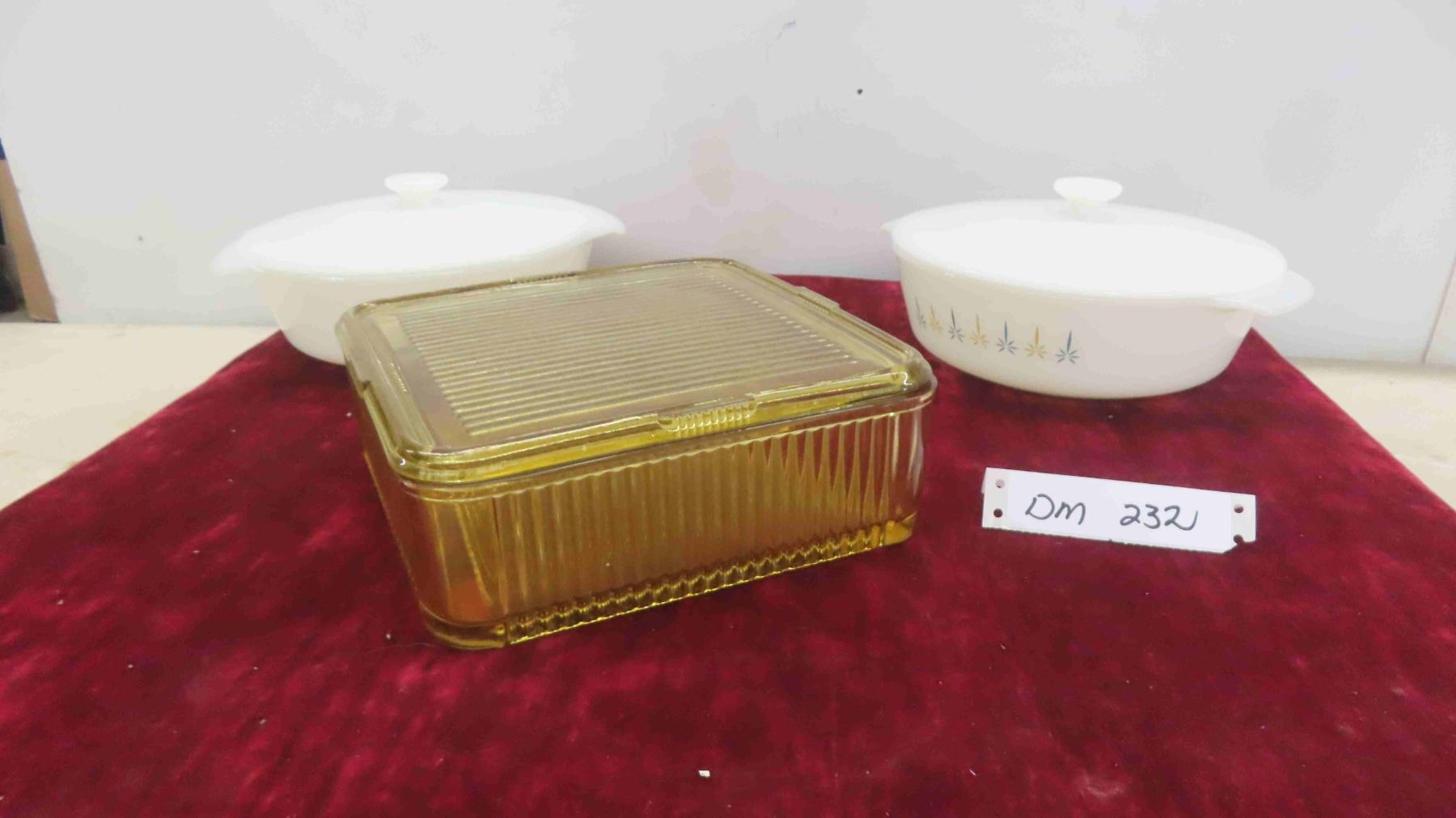 2 Fireking Casserole Dishes with Lids , Federal Amber Ribbed Refrigerator Dish with Lid