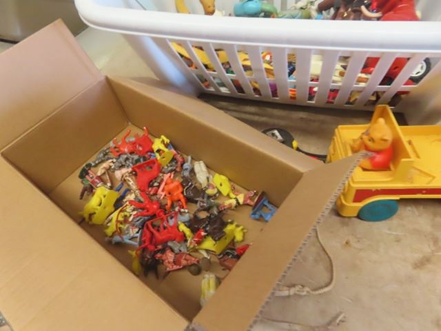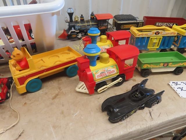 2 Fisher Price Trains, Timberwolf Train, Disney Winnie the Pooh Train, Batman Plastic Car, Toy Figurines + Animals plus more