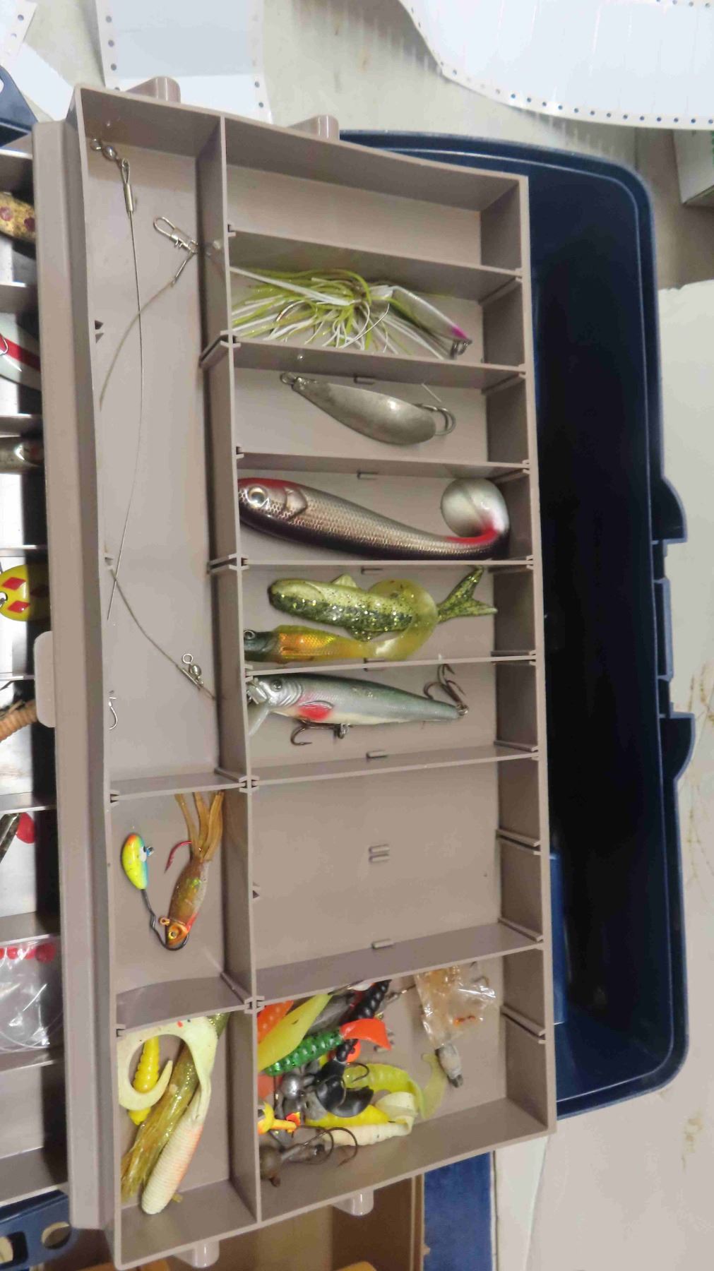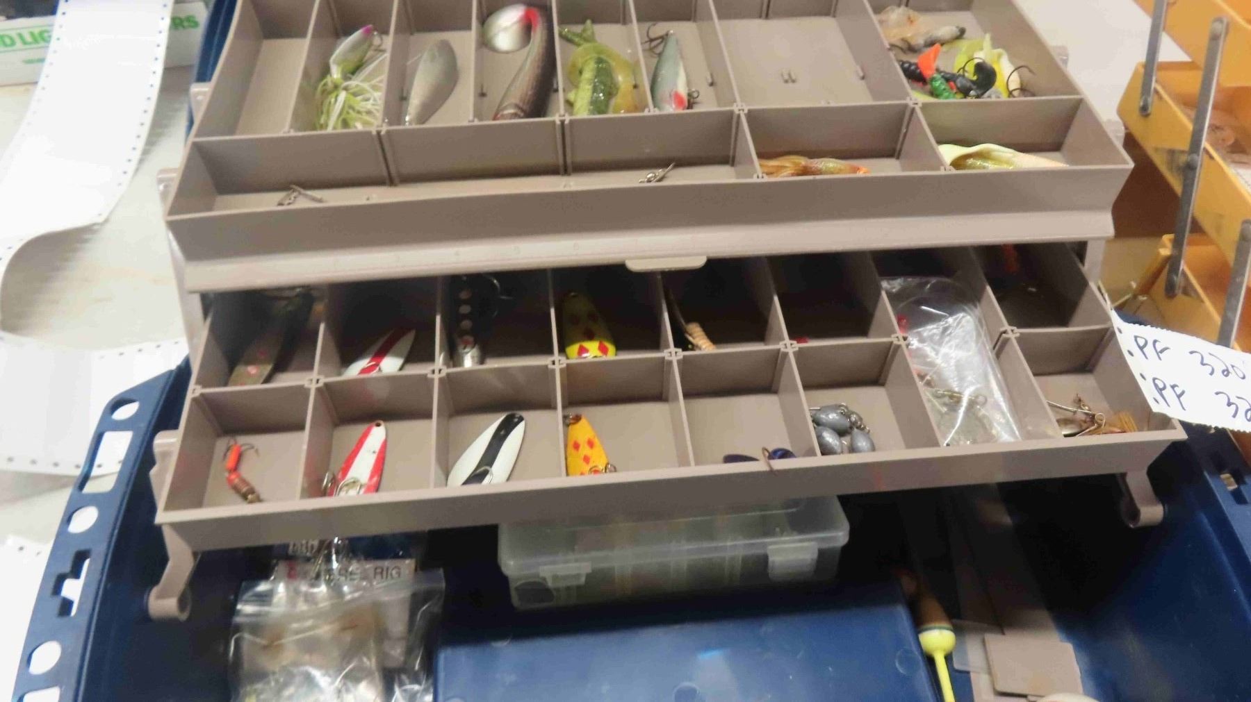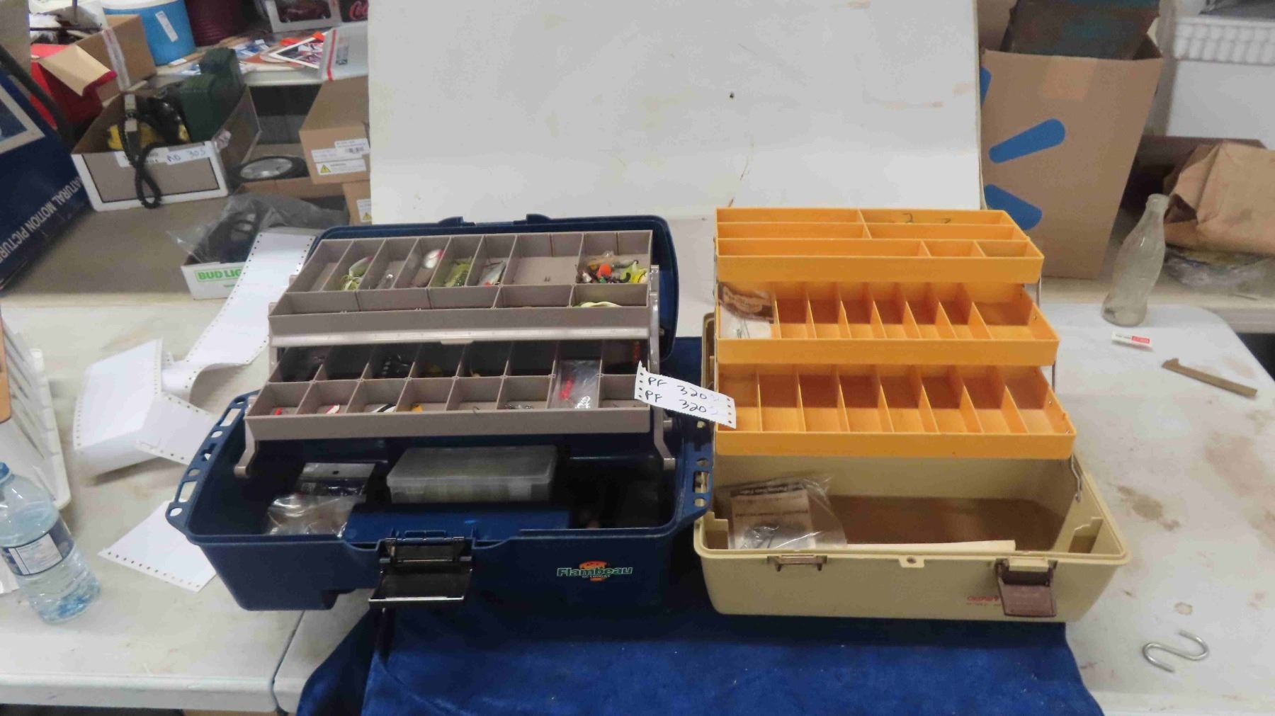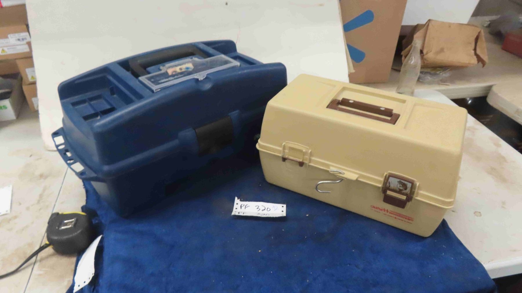 2 Fishing Tackle Boxes - 1 Fairly Full, Other Barley Full ; Lures, Hooks, Fillet Knife, Jigs, Floats, related items