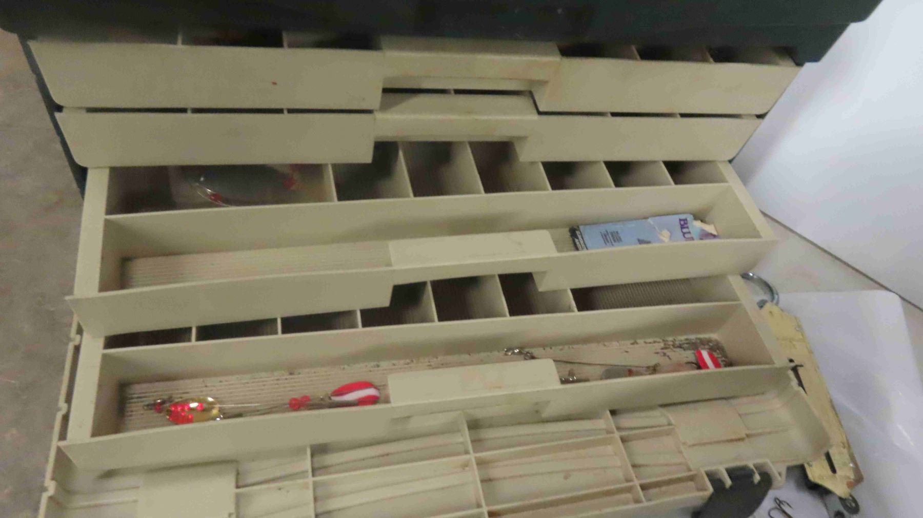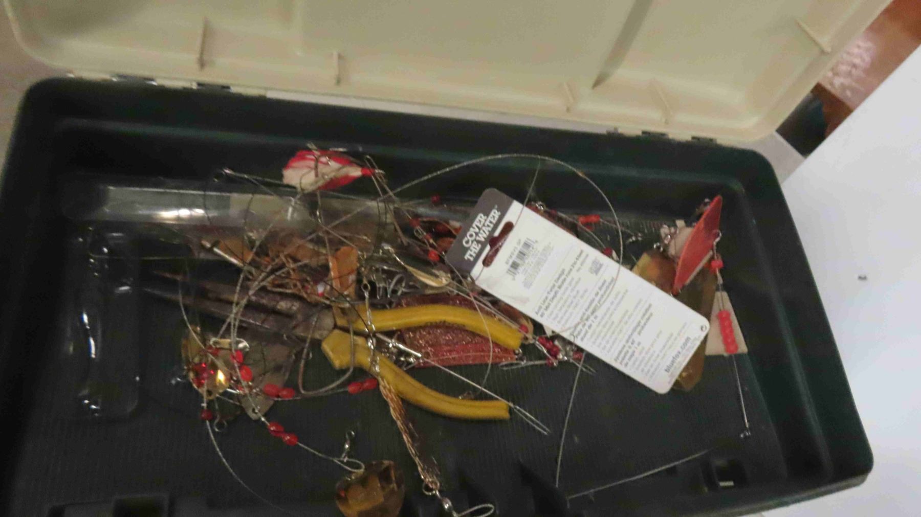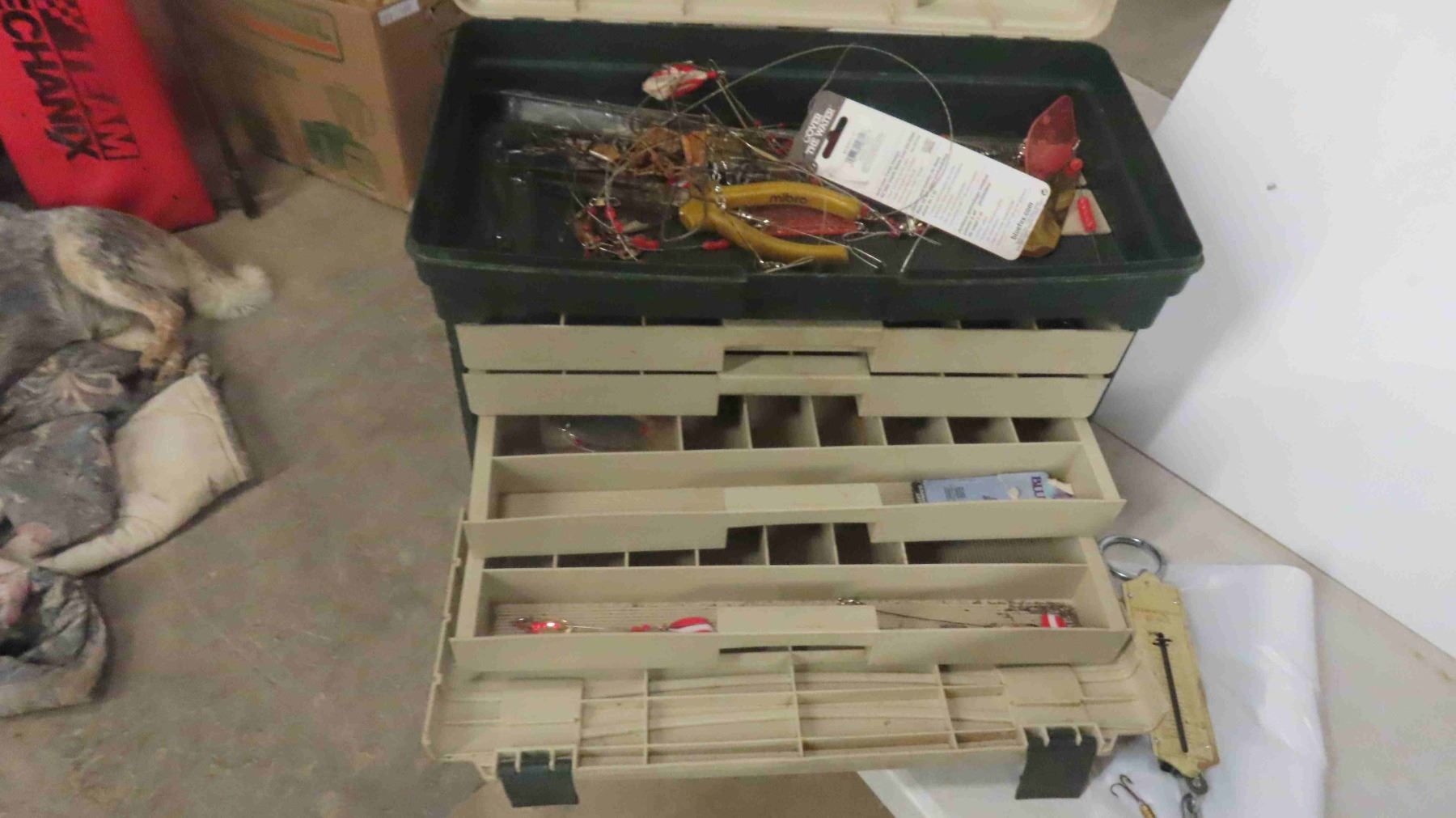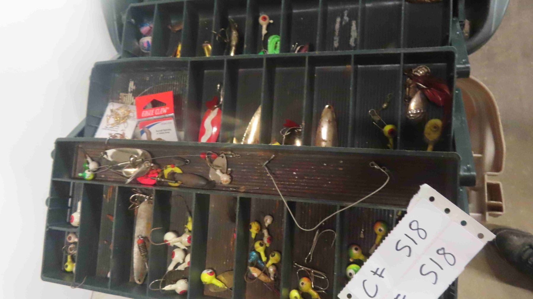 2 Fishing Tackle Boxes with Product: Fishing Line, Hooks, Lures, Jigs