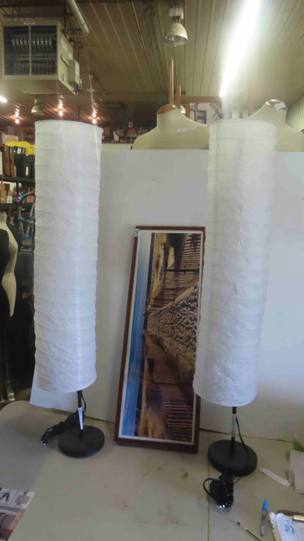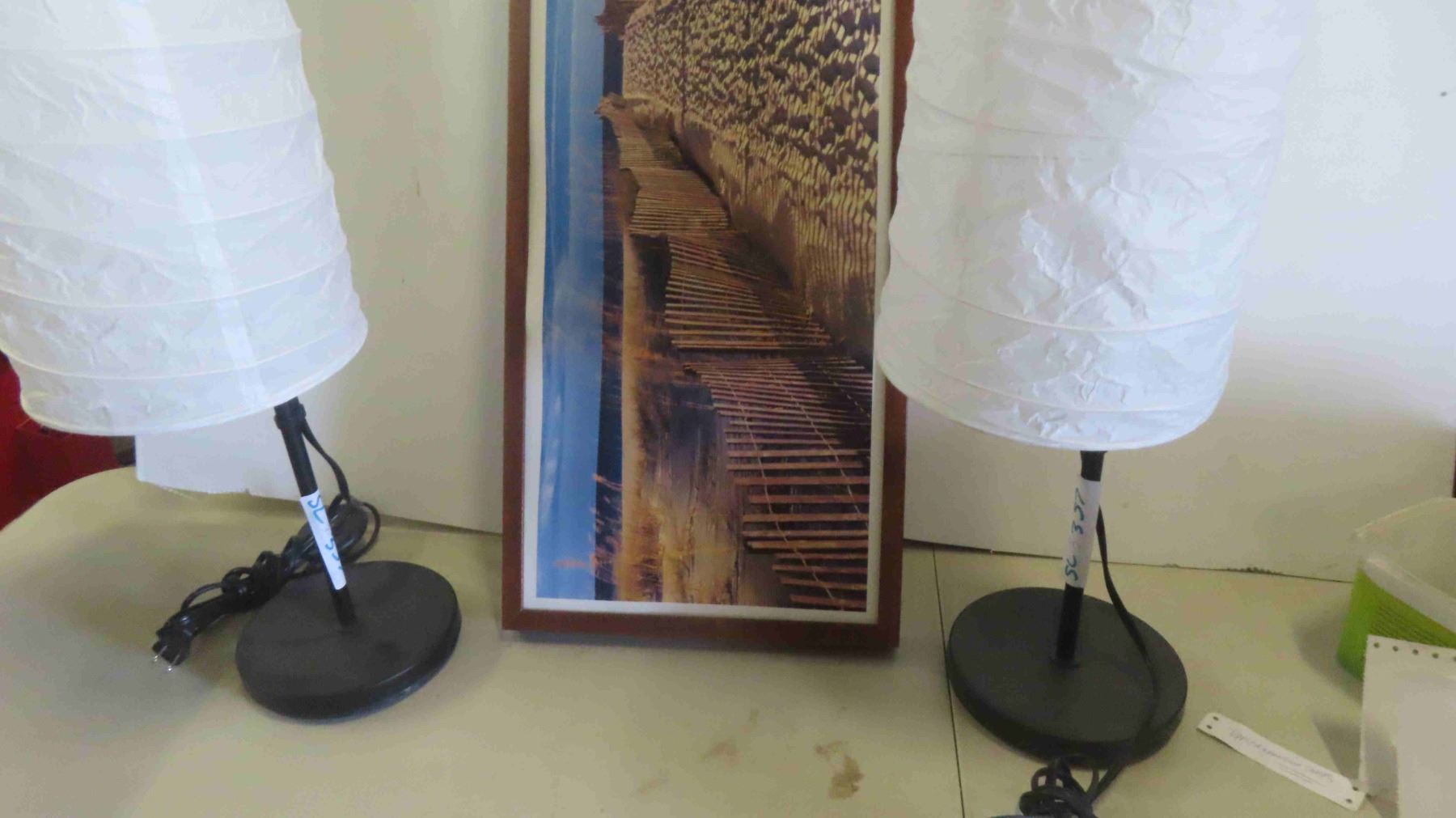 2 Floor Lamps , Coastal Beach Scene Large Picture 13'' x 36''