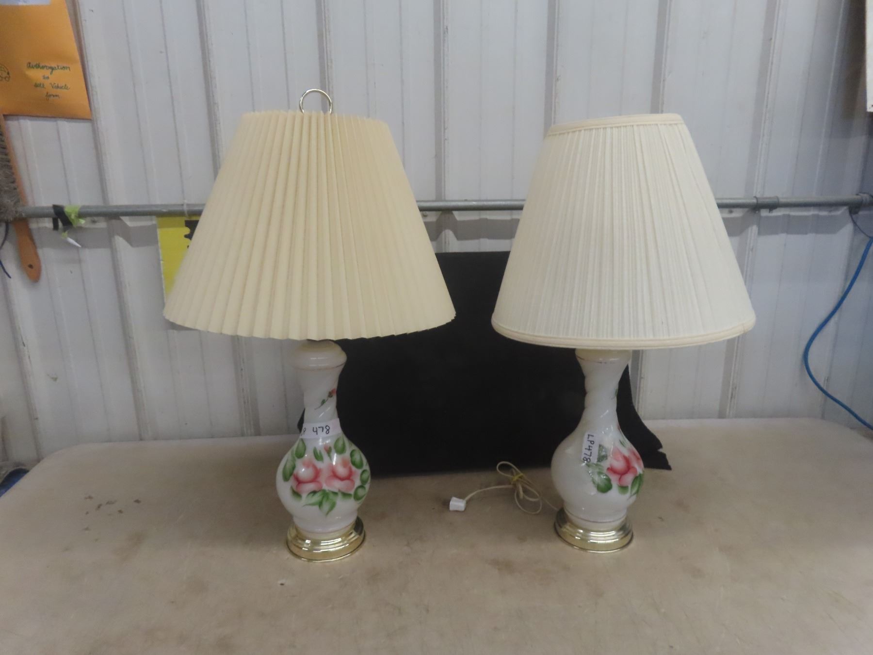 2 Floral Design Table Lamps with Unmatched Shades