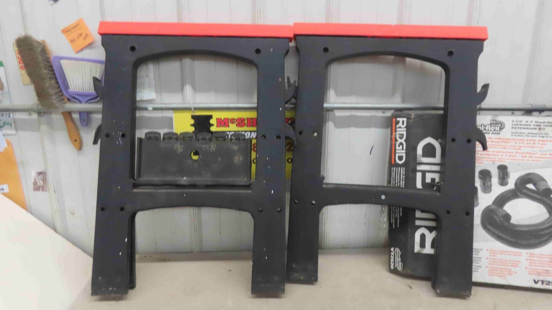 2 Folding Saw Horse + New Old Stock Dual Flex Locking Vac Hose