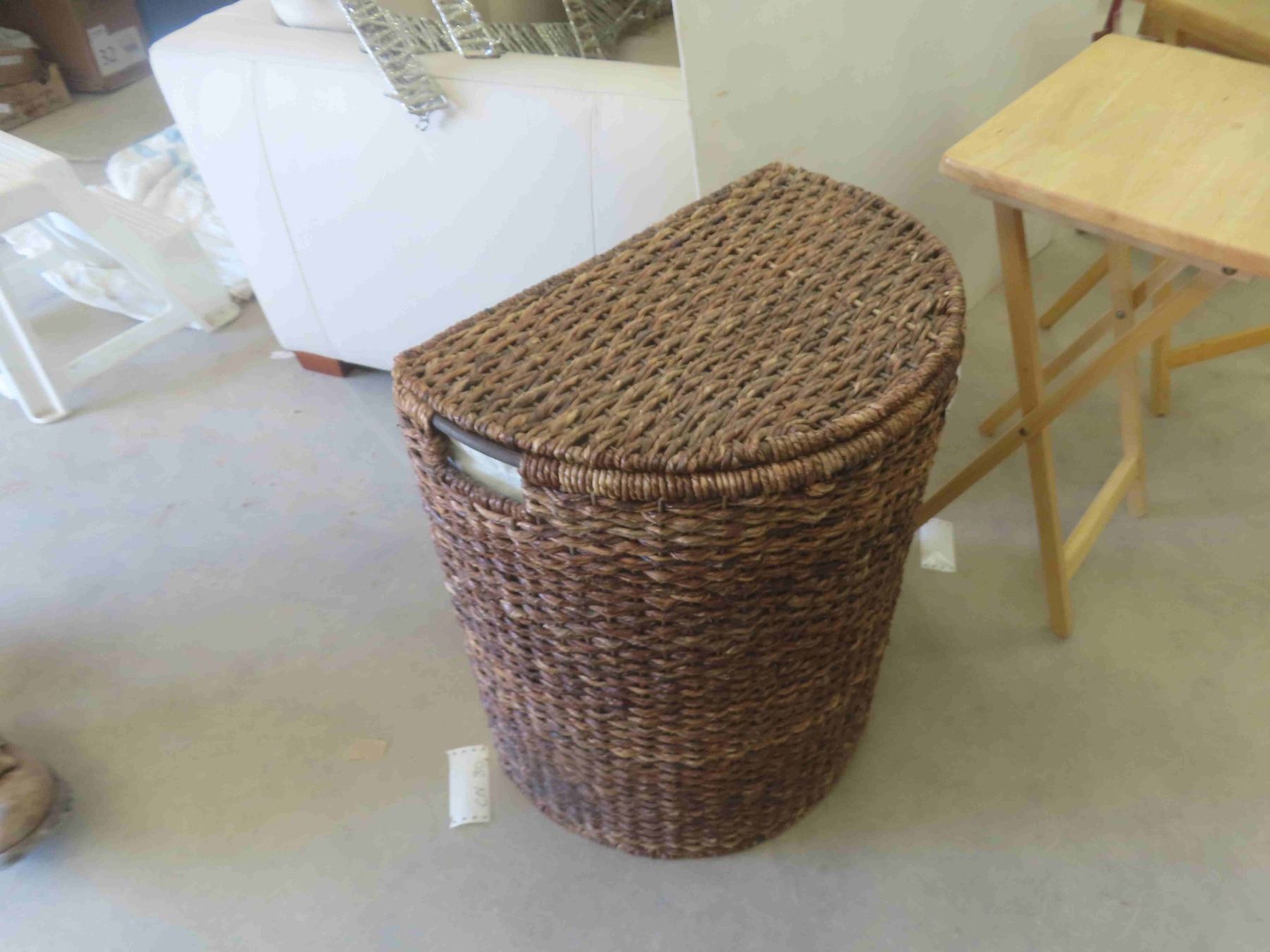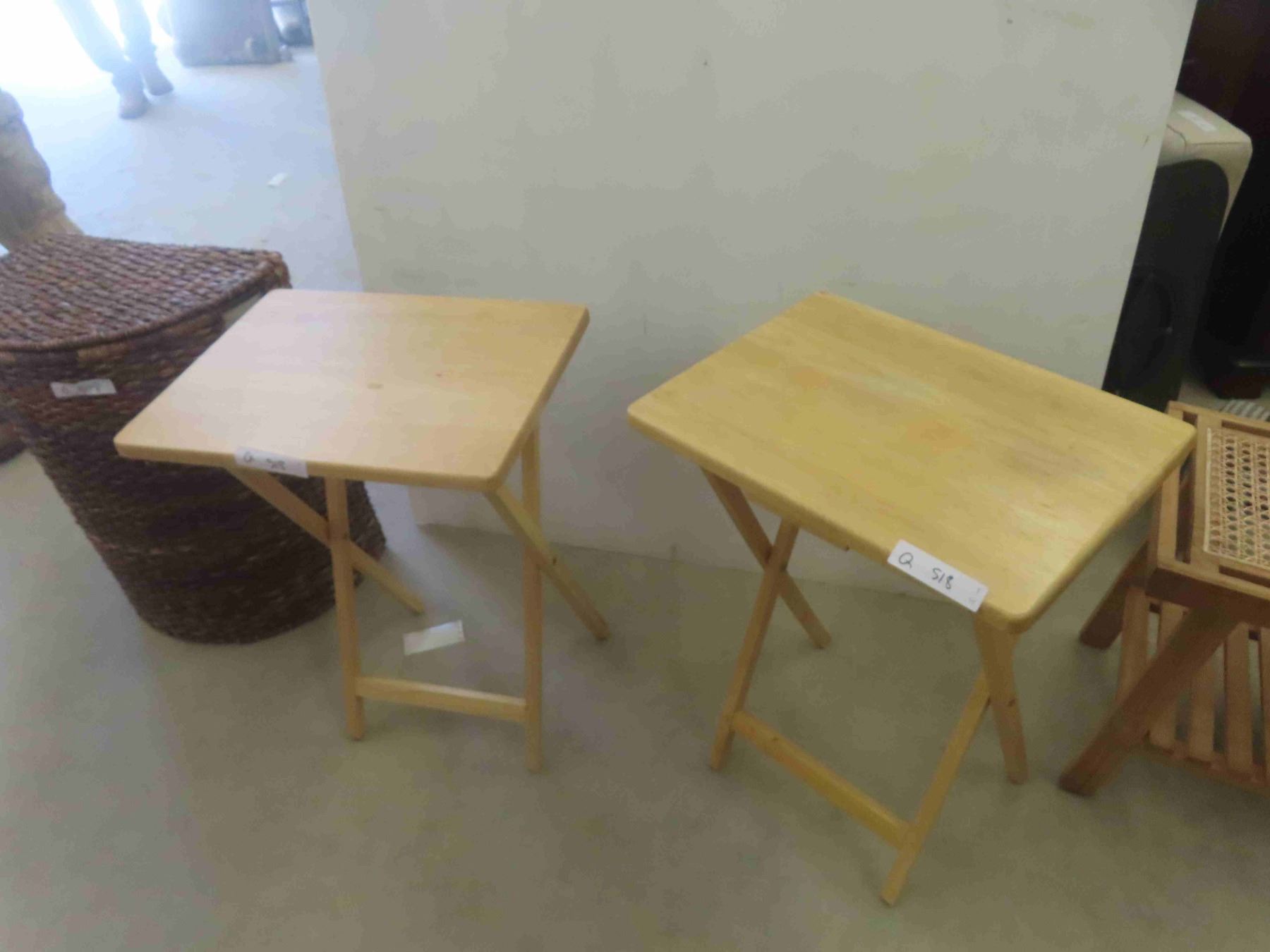 2 Folding Wood TV Tables, Wicker Hamper,