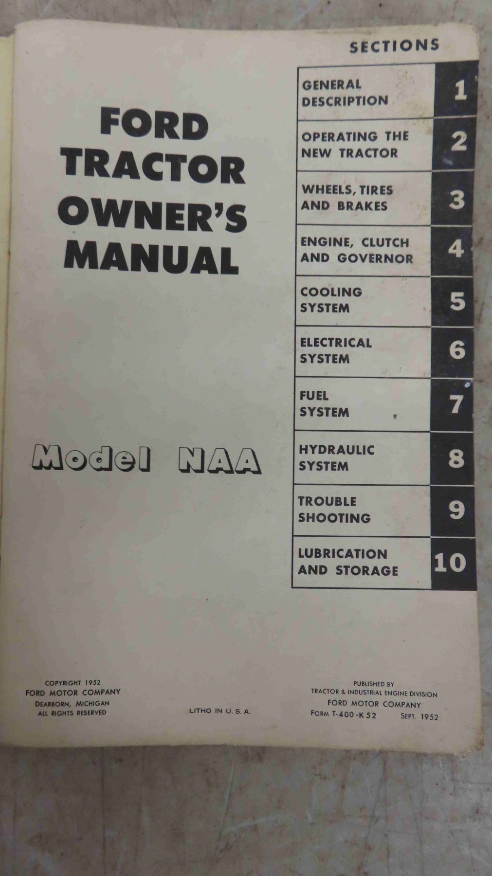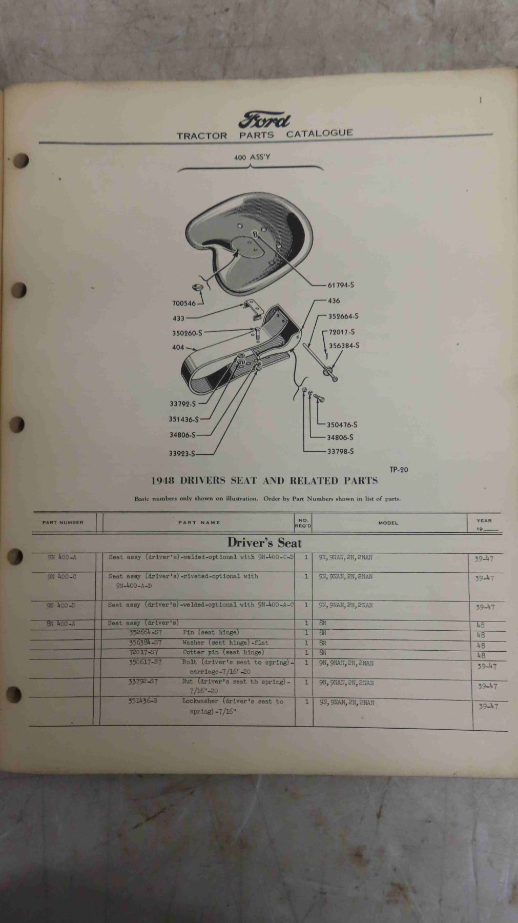 2 Ford Tractor Manuals '1947 Parts Catalogue' & 'Model NAA '