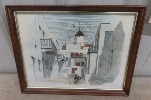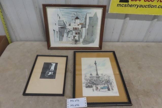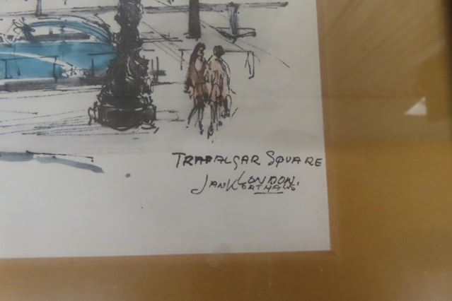 2 Framed London Street Scenes Woman + Donkey Picture Largest 13" x 17"