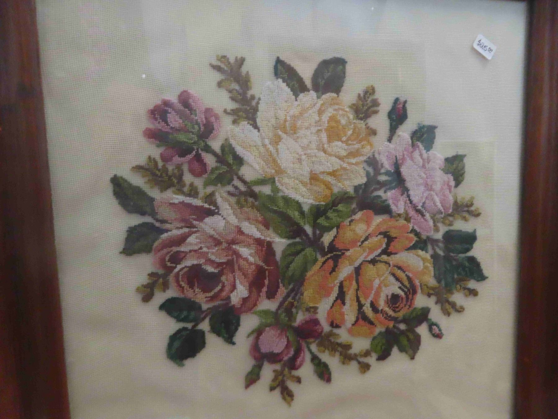 2 Framed Needle Points 15 1/2'' x 15 1/2''