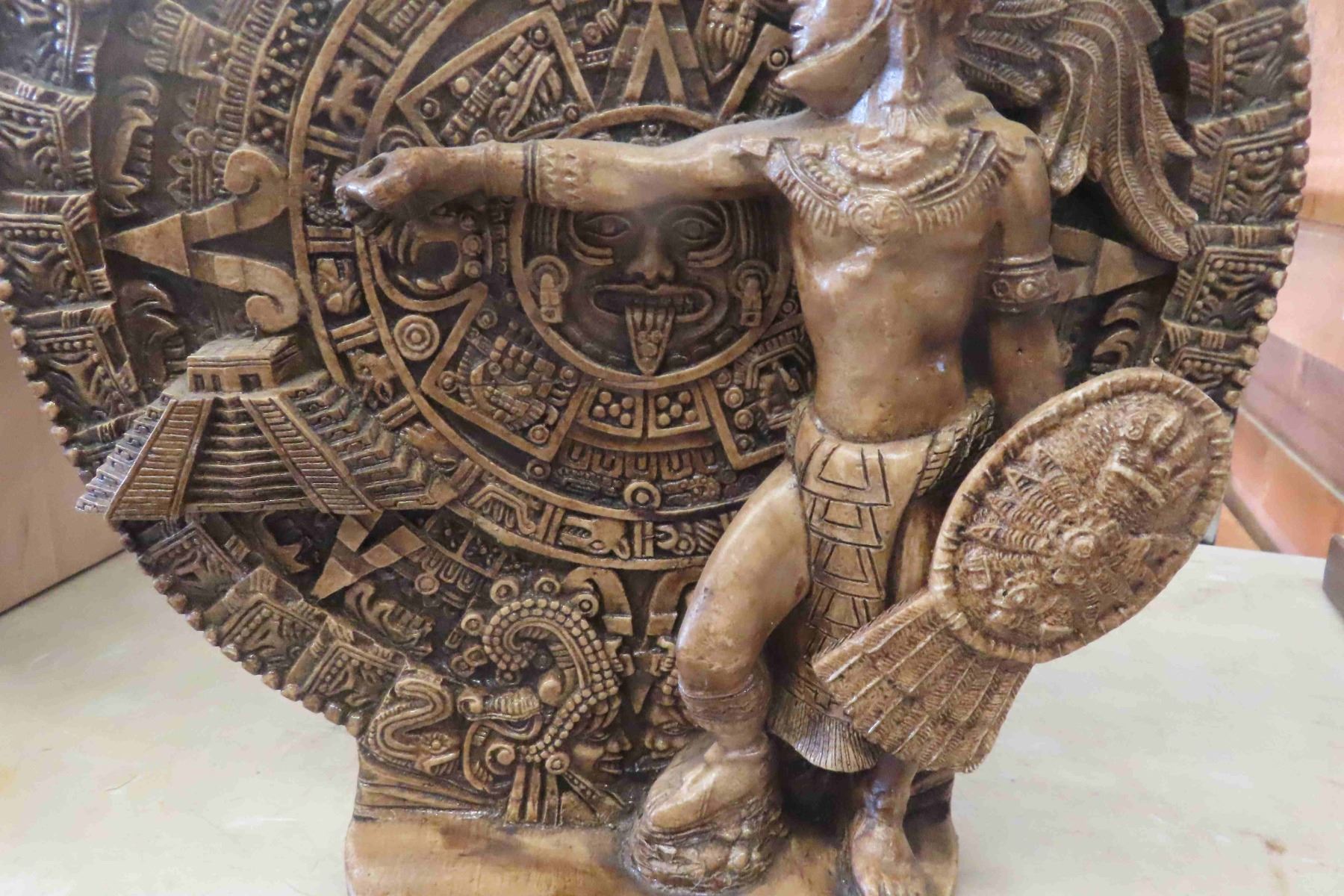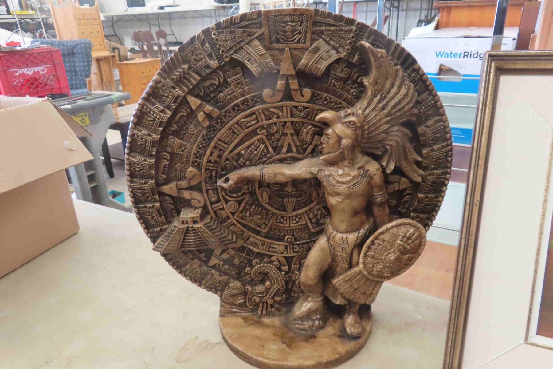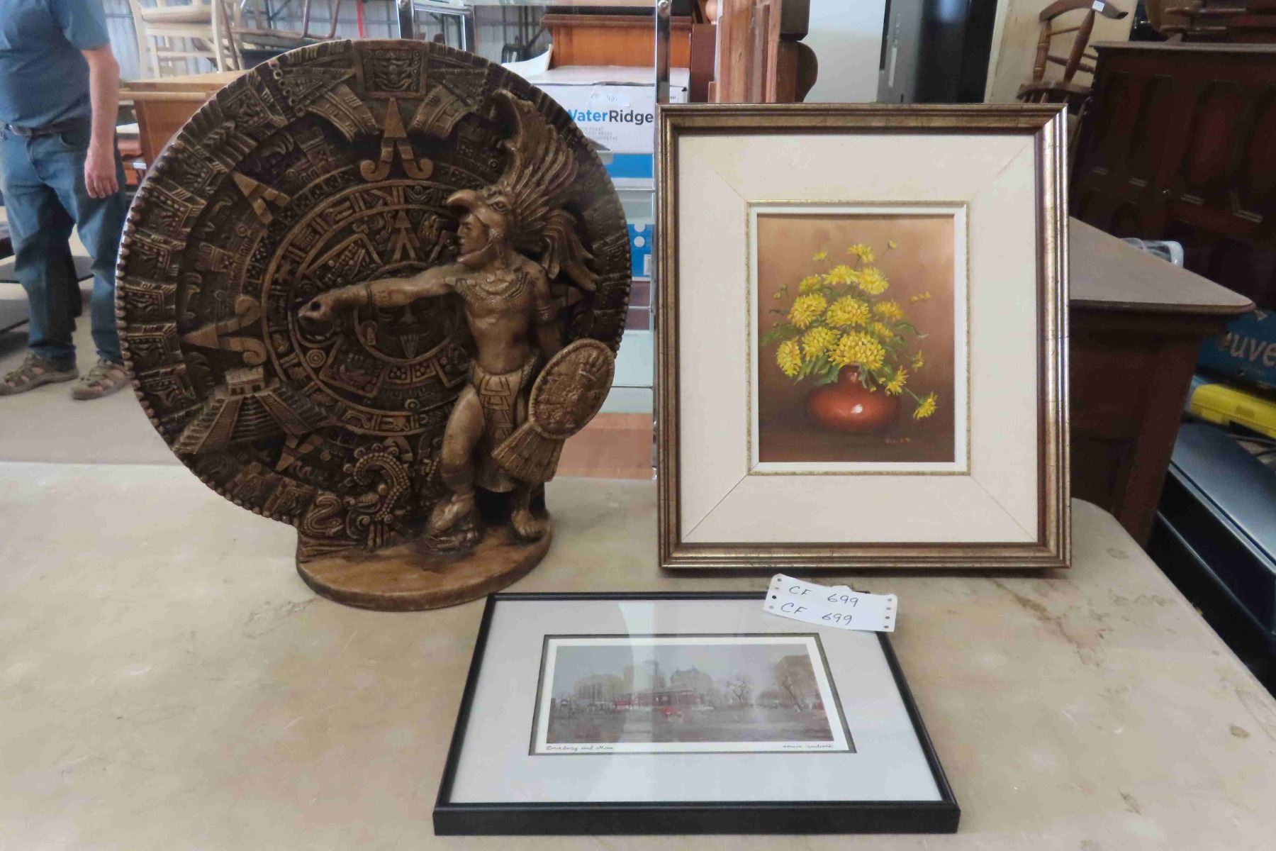 2 Framed Pictures : Broadway and Main 10x13, Flowers 7x15 + Aztec Warrier Display 19x18