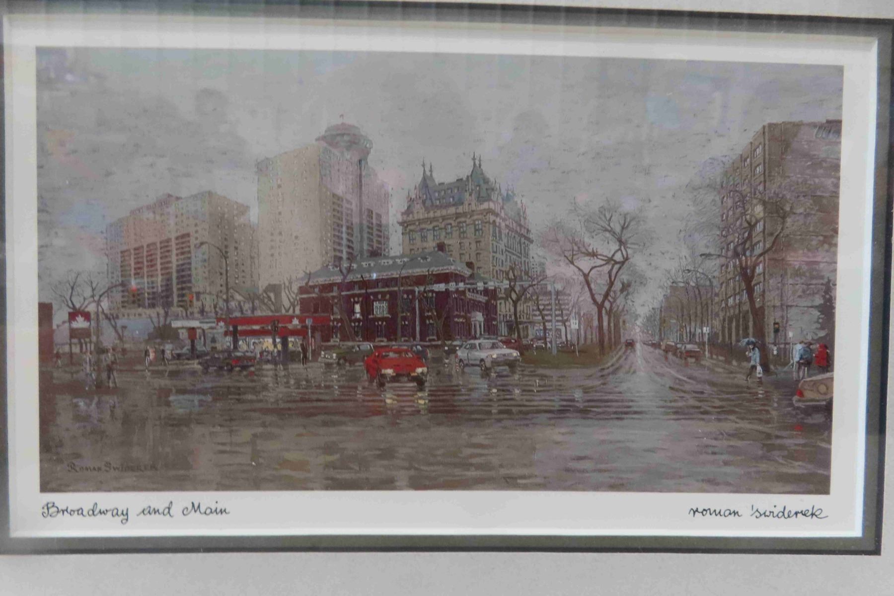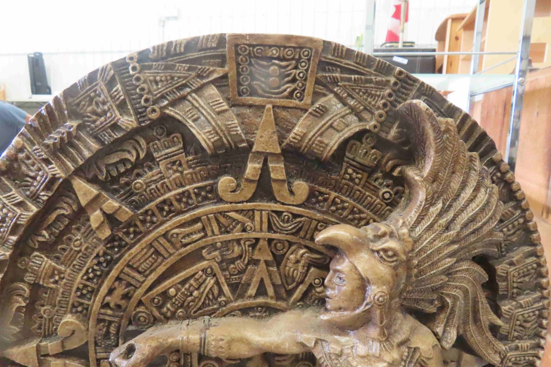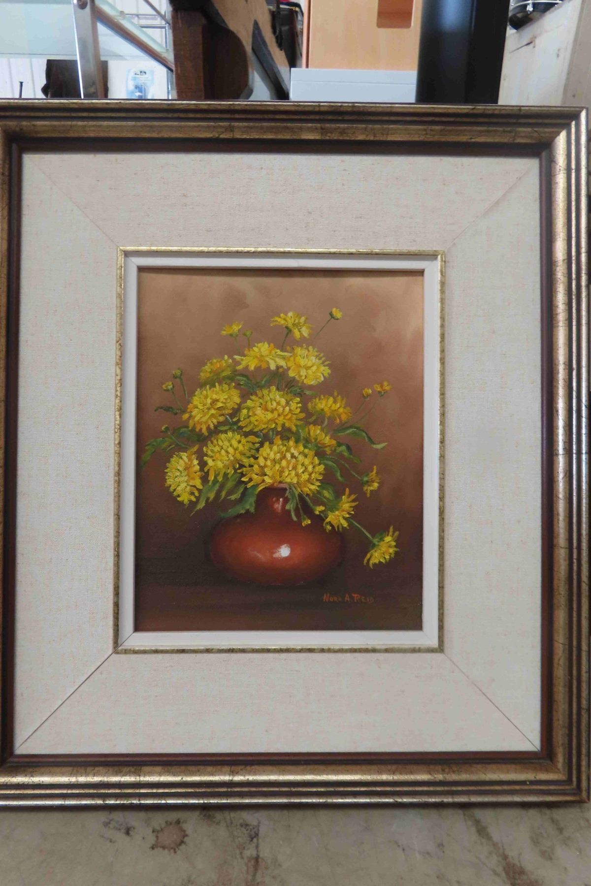 2 Framed Pictures : Broadway and Main 10x13, Flowers 7x15 + Aztec Warrier Display 19x18