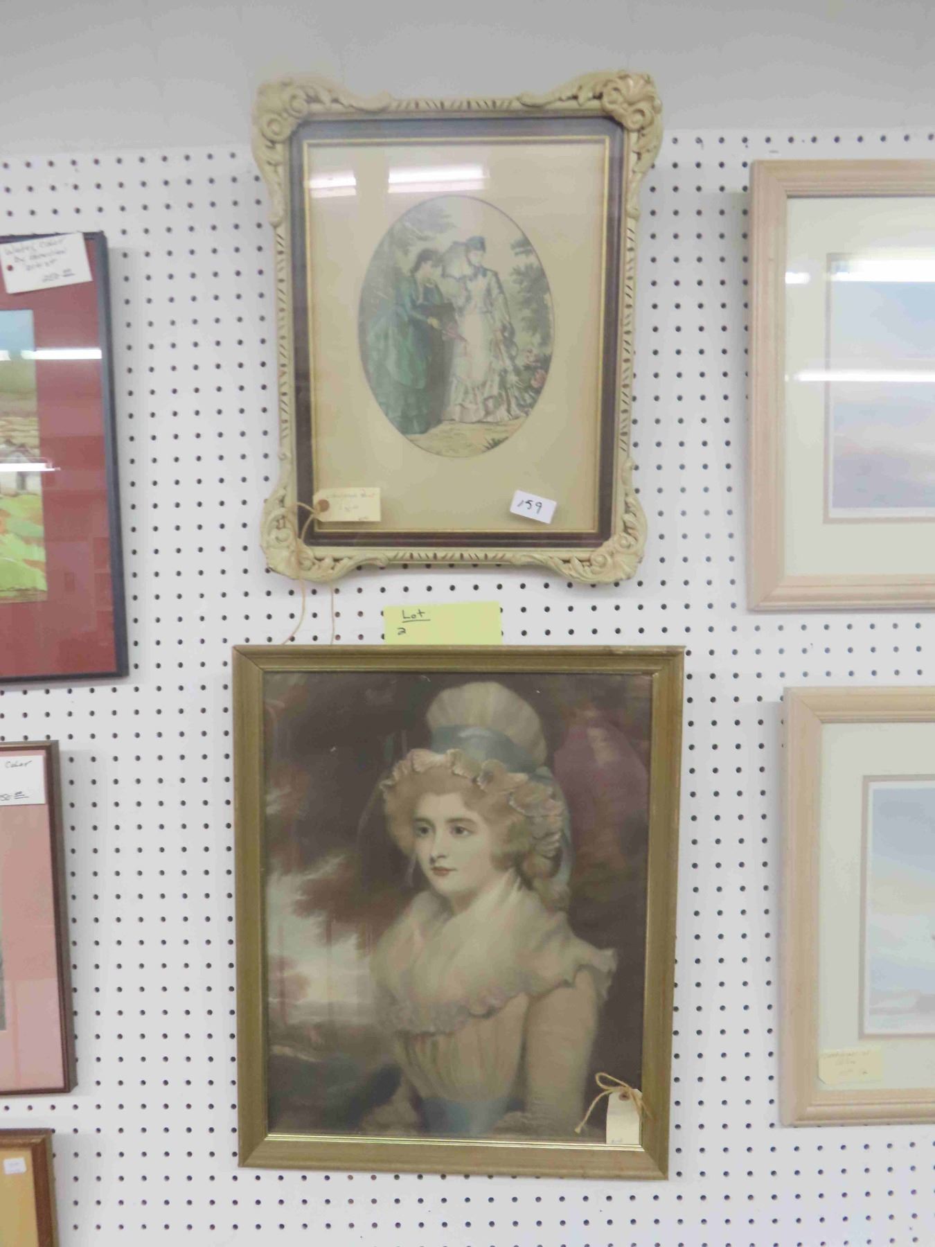 2 Framed Pictures ; Lithograph & Proof of French Lady - Largest 18" x 22"