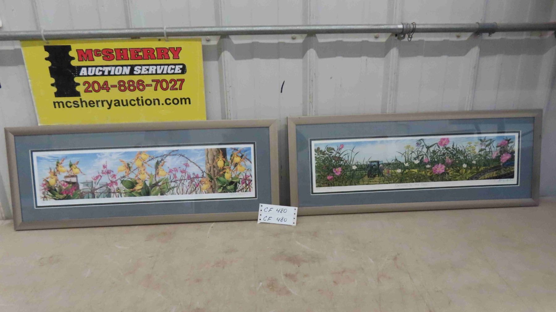 2 Framed Signed + Limited Edition Prints ; Along The Way to Town & Deliver To The Door 11.5" x 29"