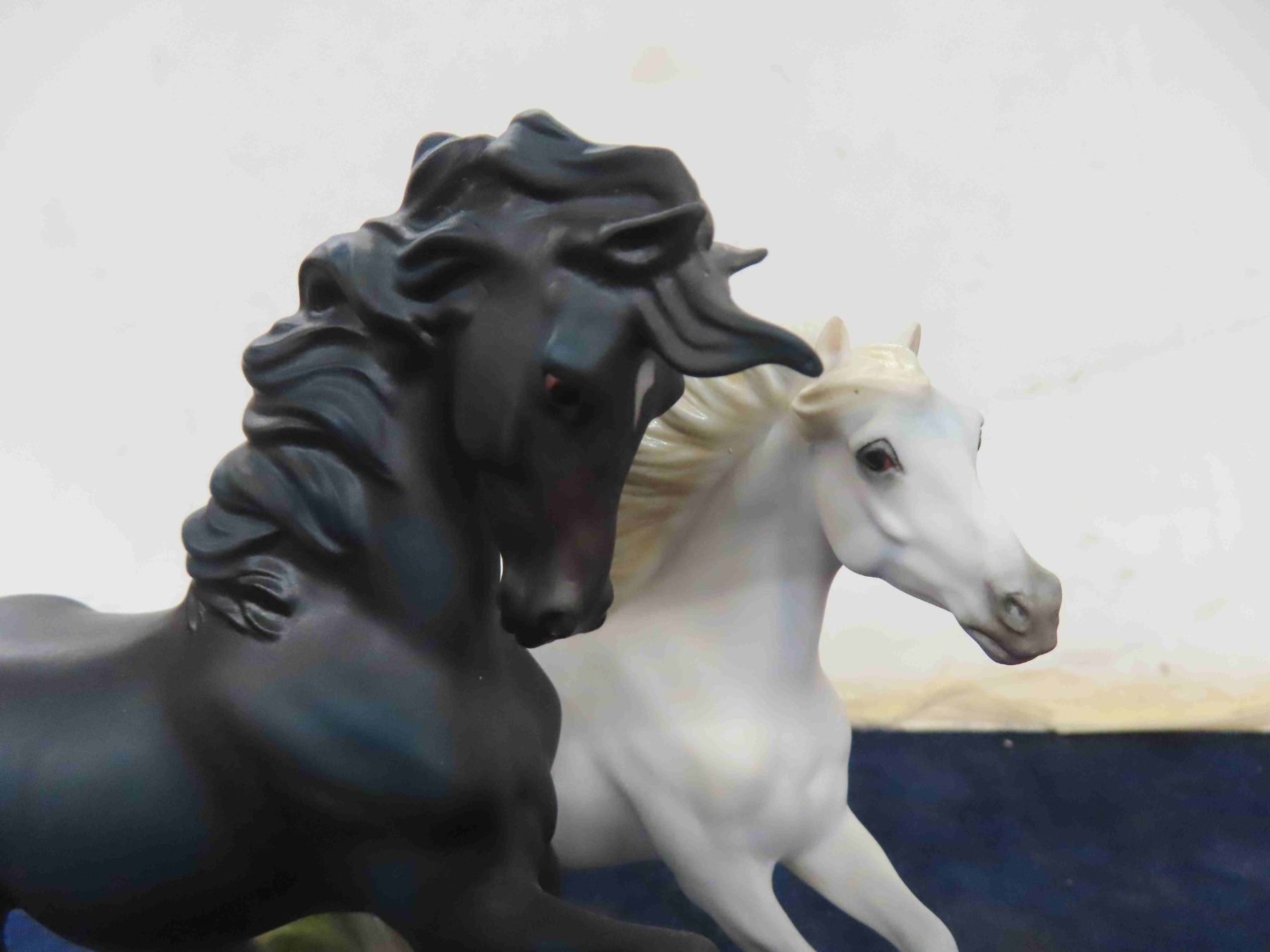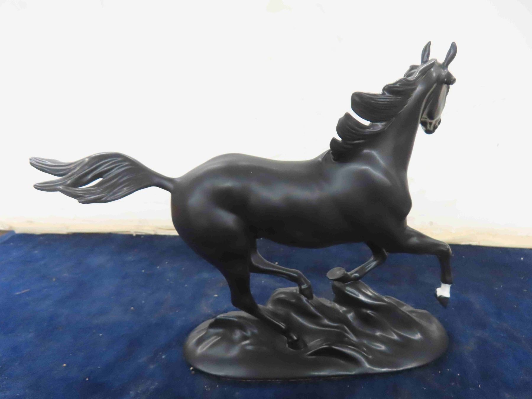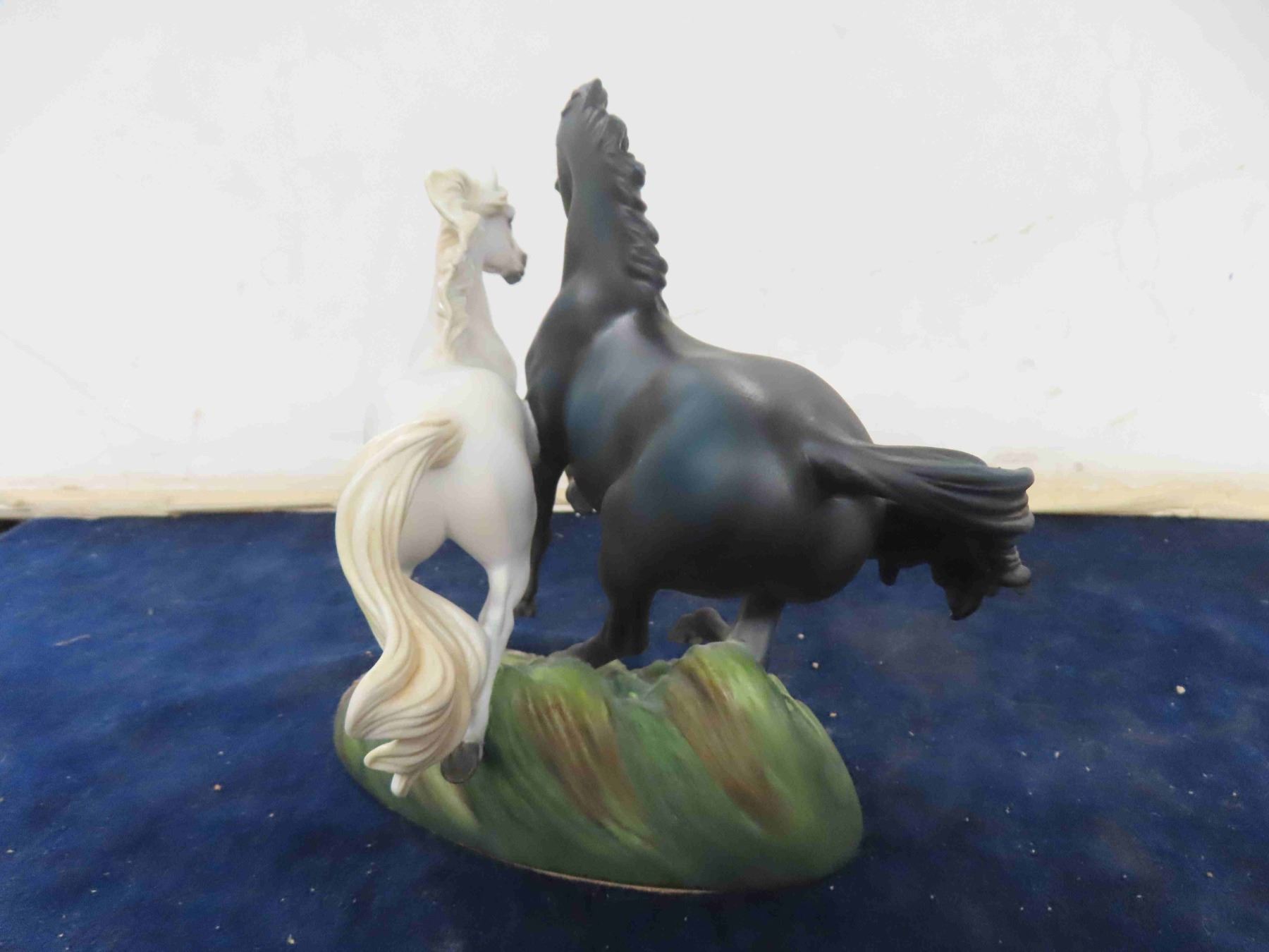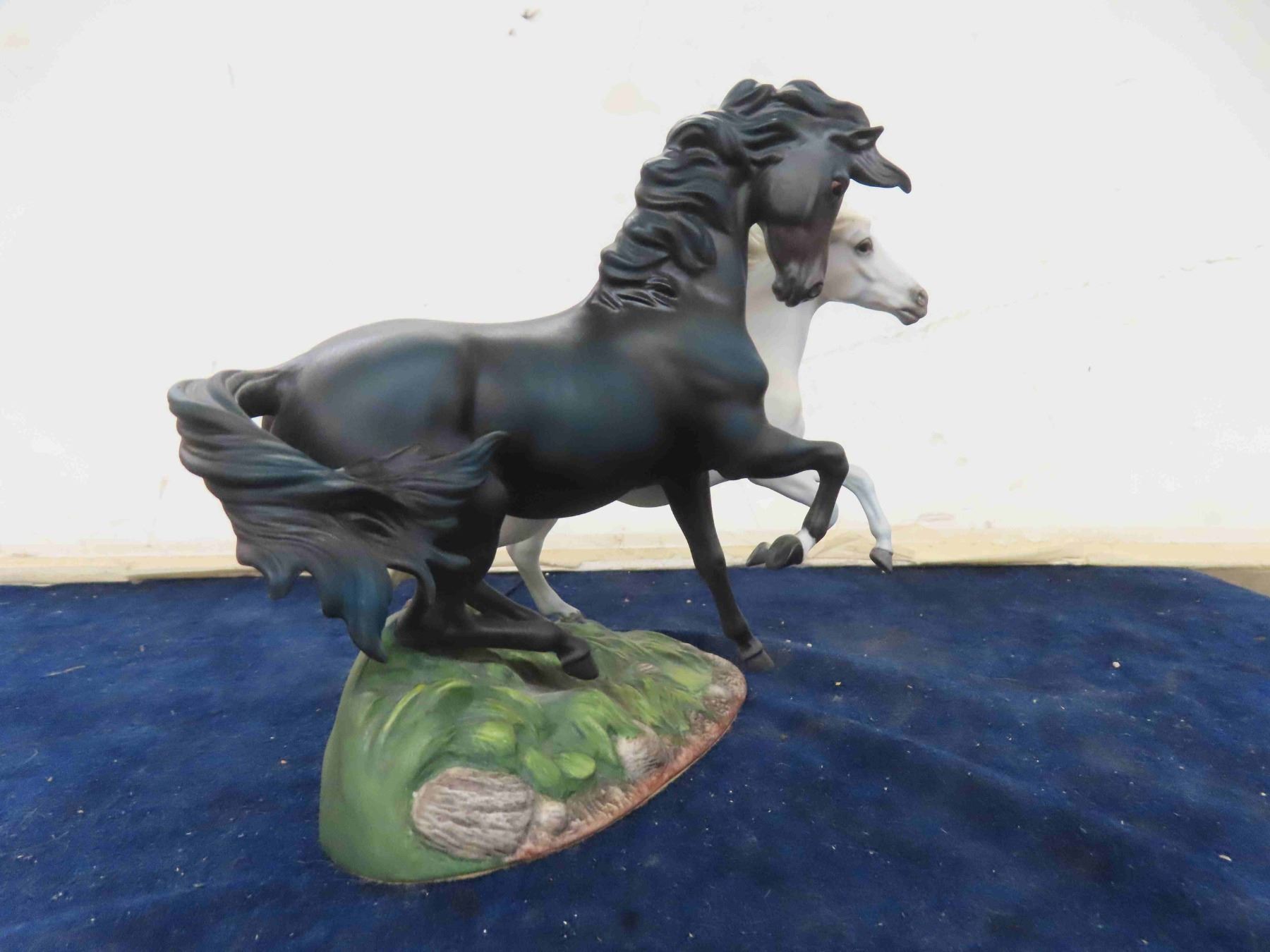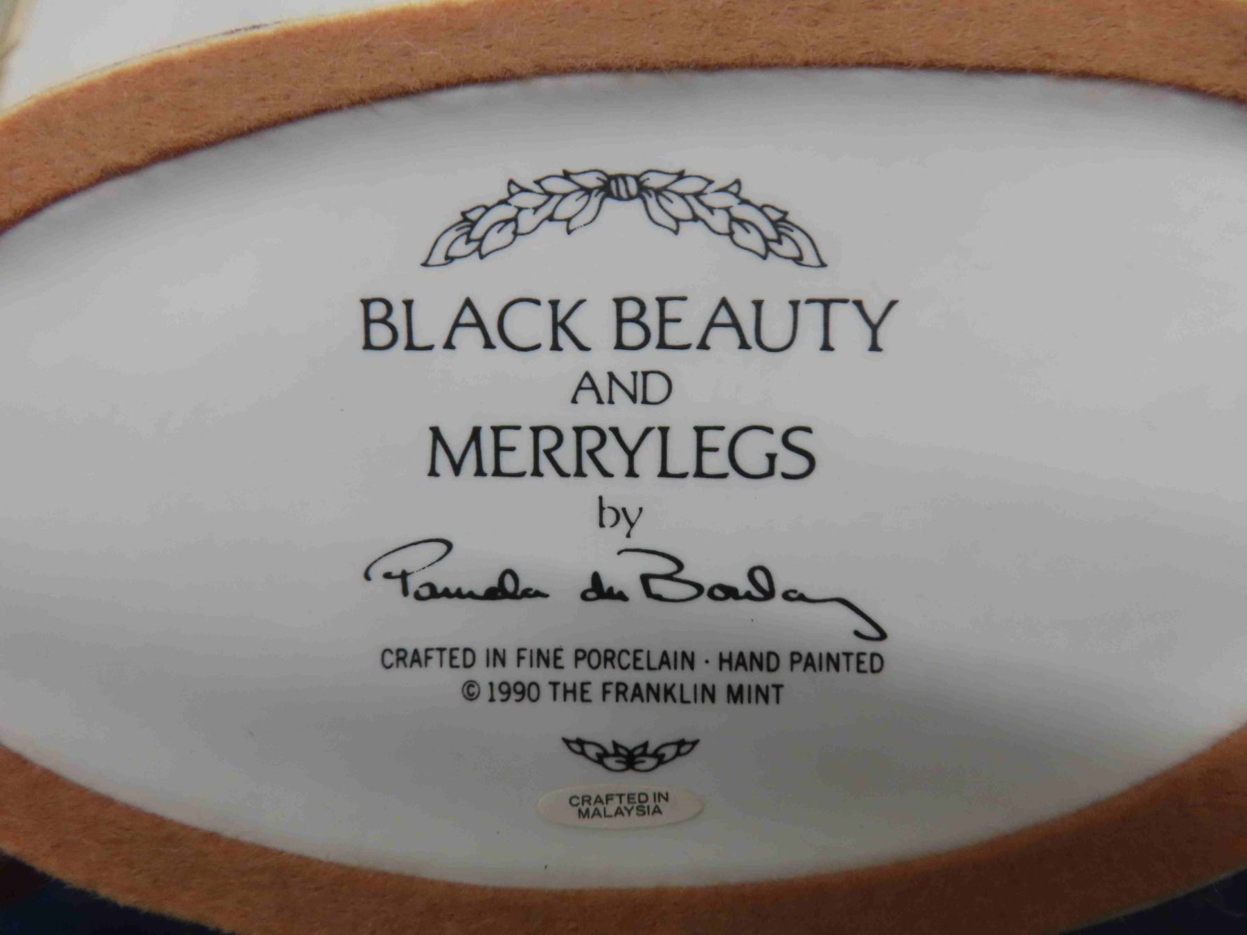2 Franklin Mint Black Beauty Porcelain Statues by Pamela Du Boulay; 9" x 12" + 7.5" x 9"