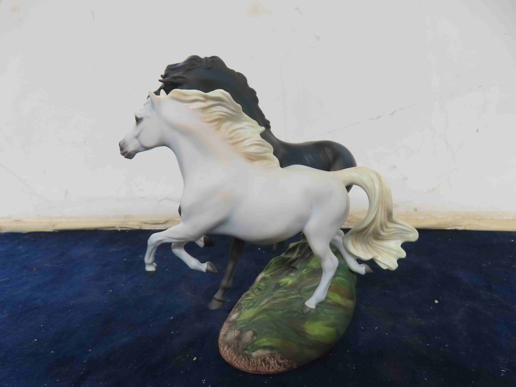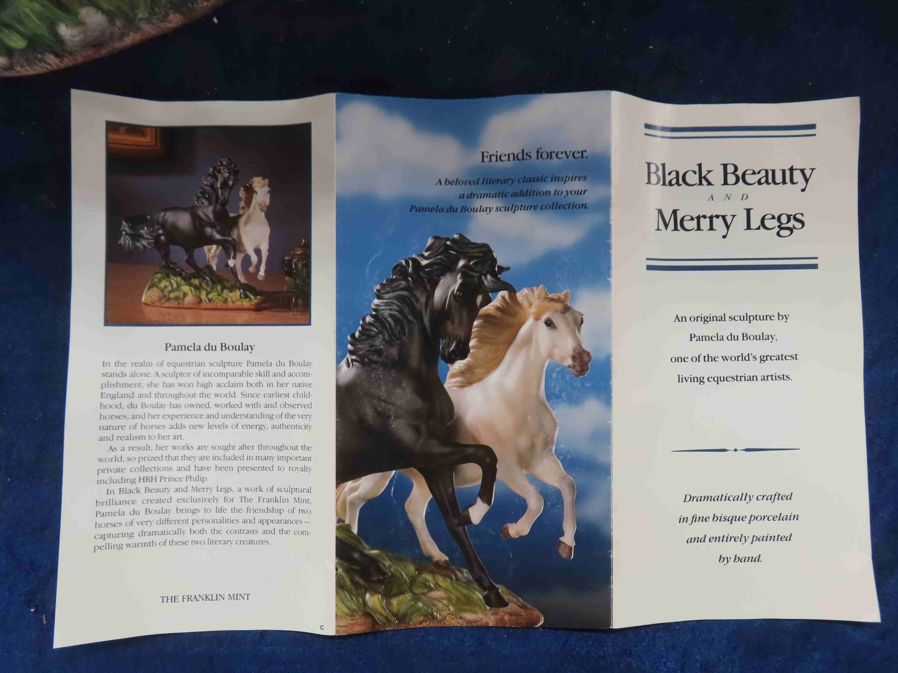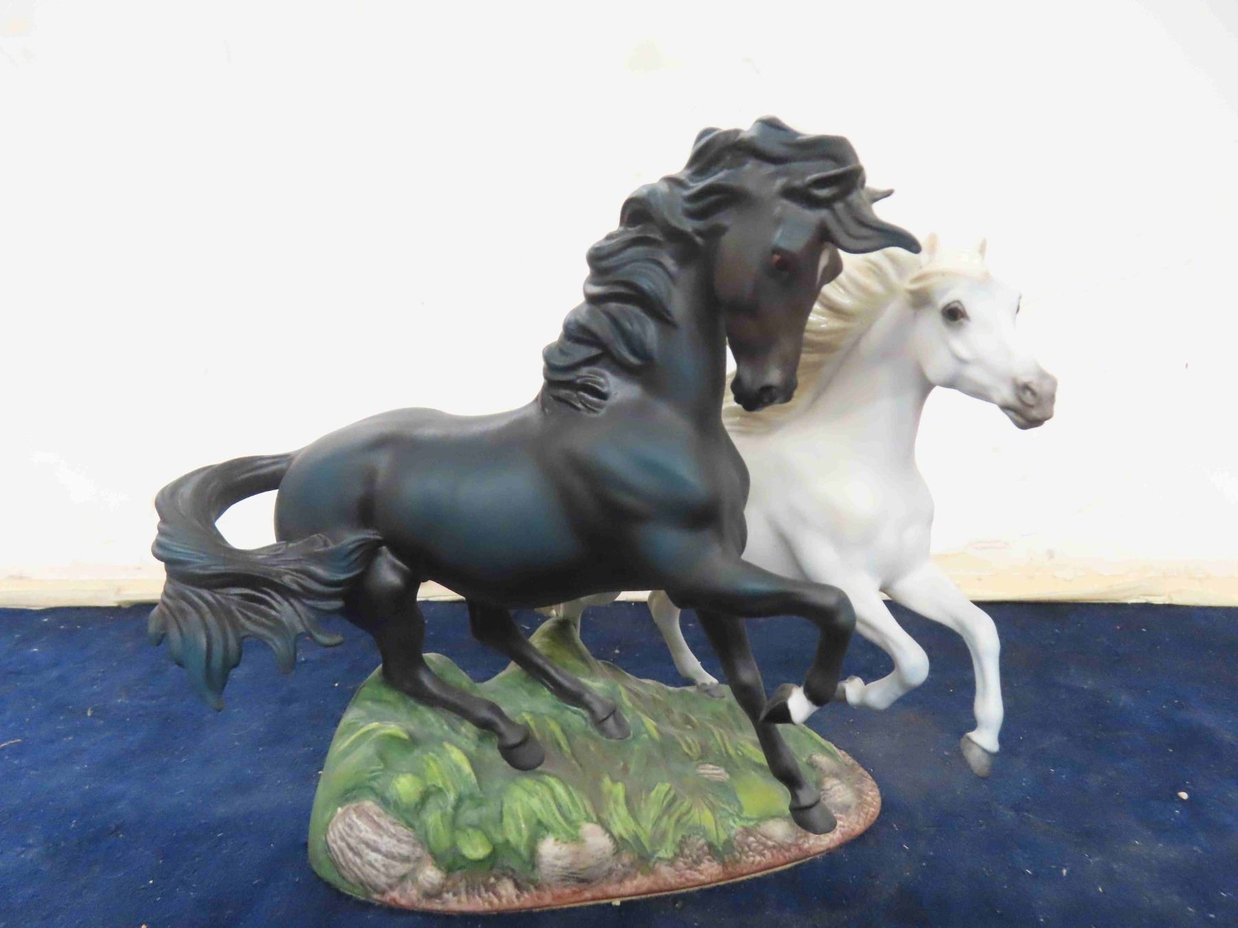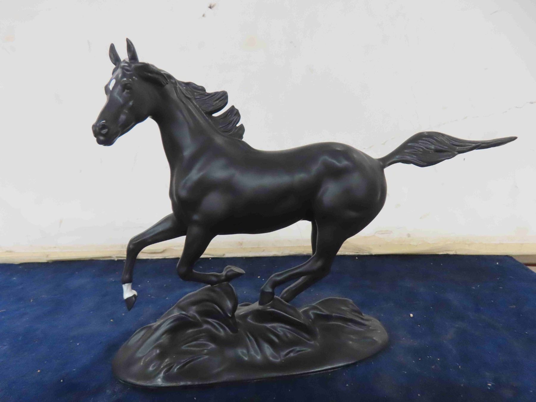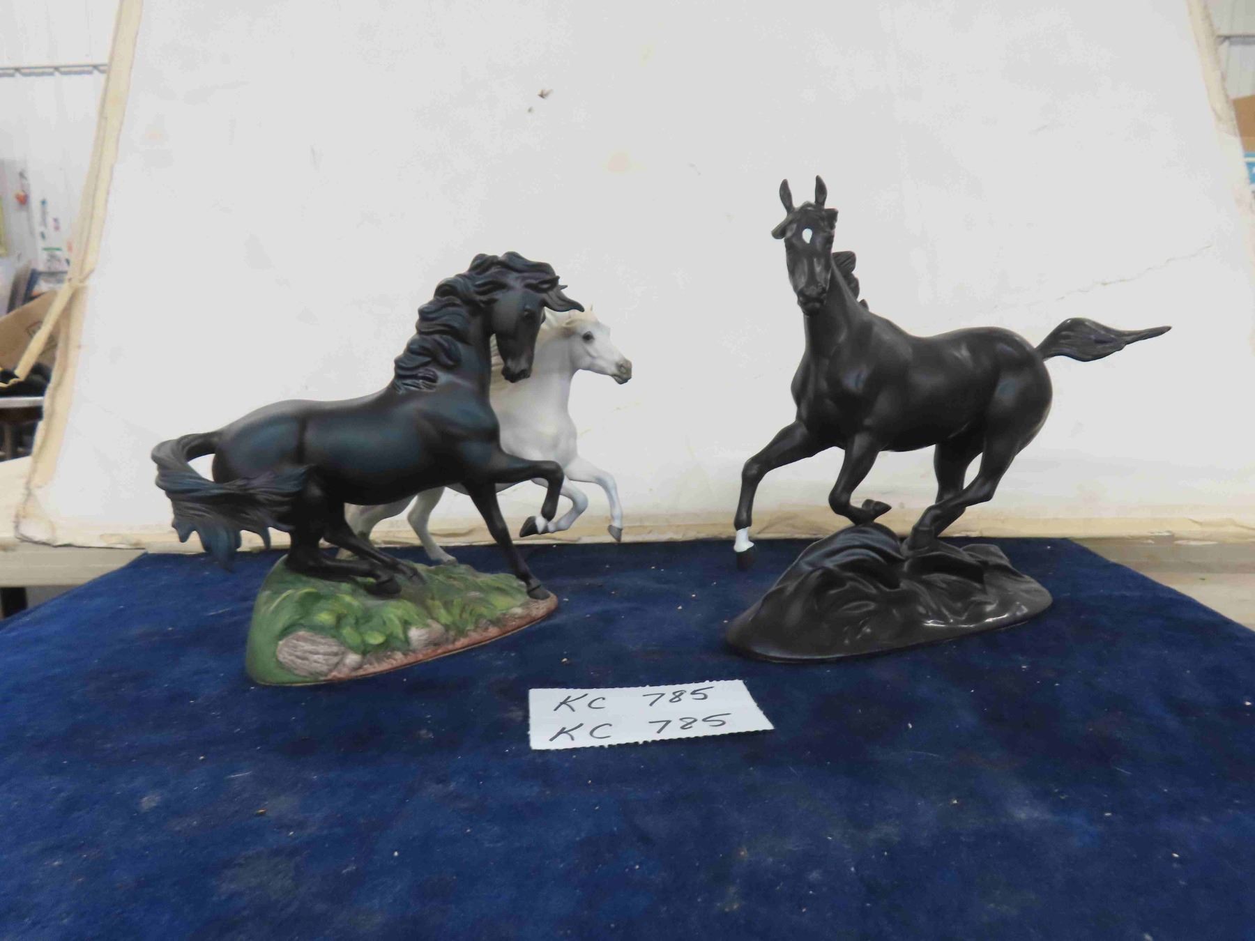 2 Franklin Mint Black Beauty Porcelain Statues by Pamela Du Boulay; 9" x 12" + 7.5" x 9"