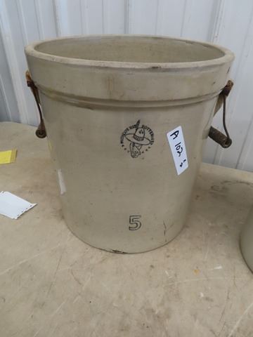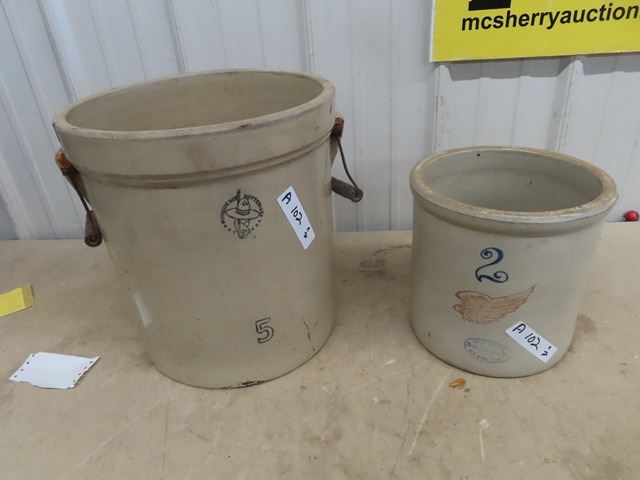 2 Gal Redwing Crock, & 5 Gal Medicine Hat Crock