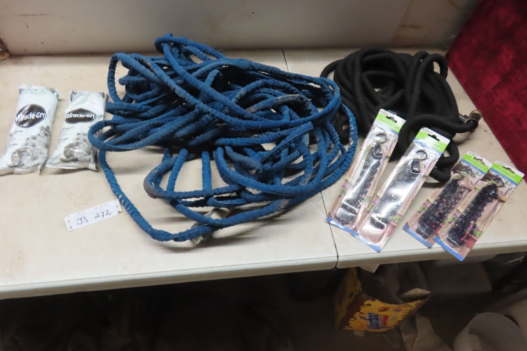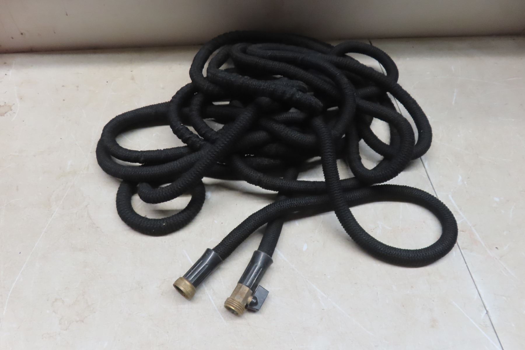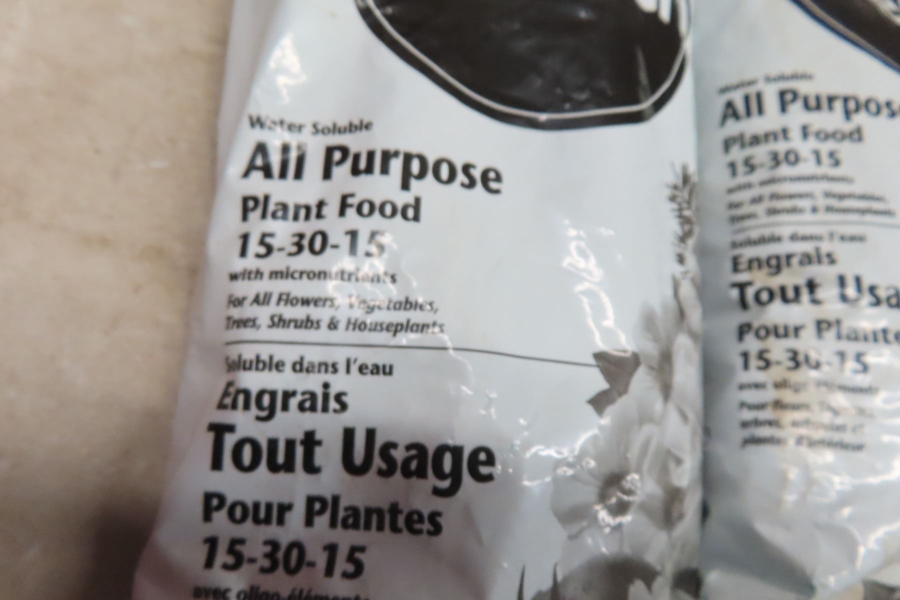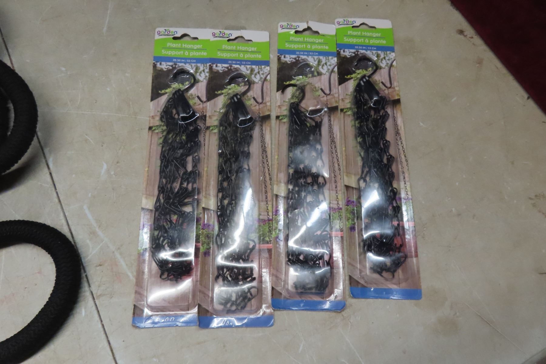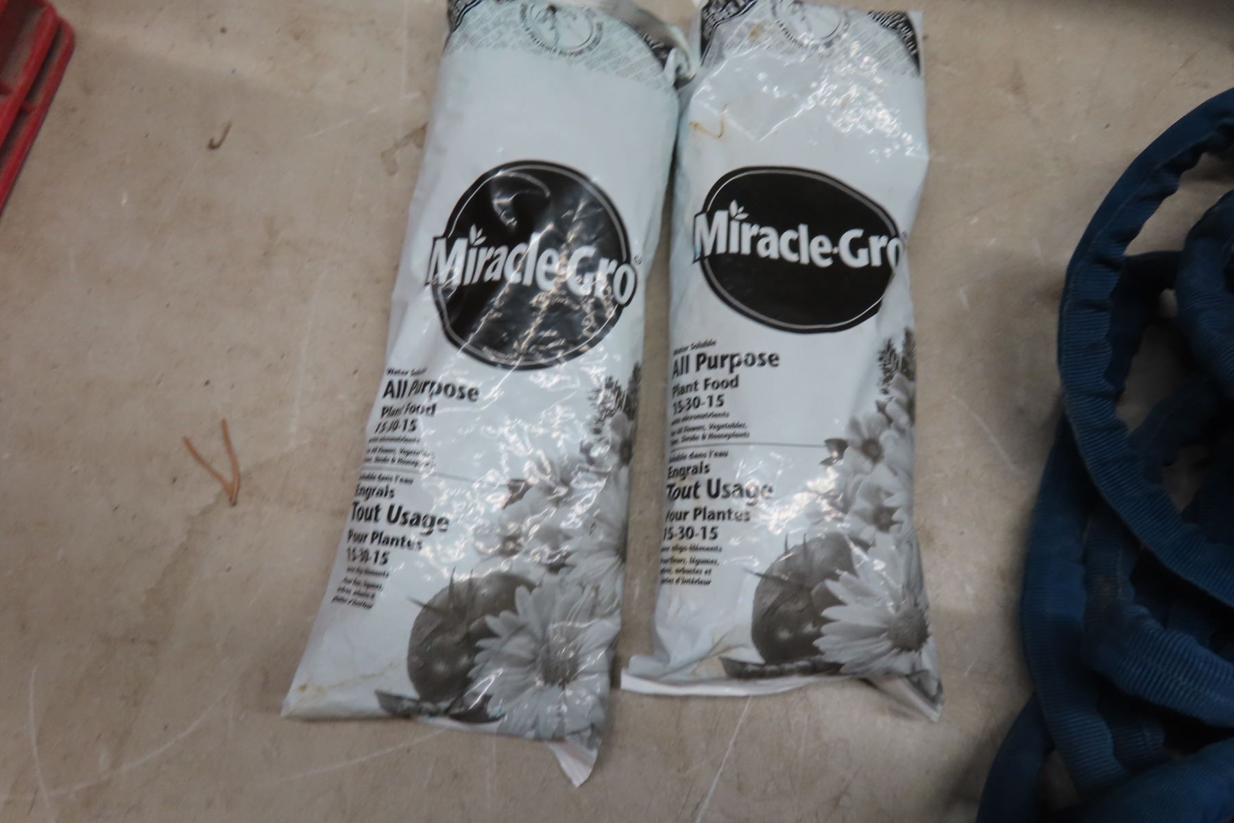 2 Garden Hoses, 2 pkgs 15-30-15 Plant Food and 4 Plant Hangers