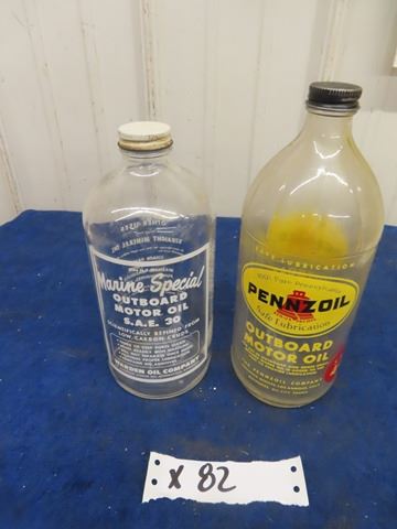 2 Glass Quart Outboard Motor Oil; 1) Marine Special ( Warden Oil Company) , 1) Pennzoil