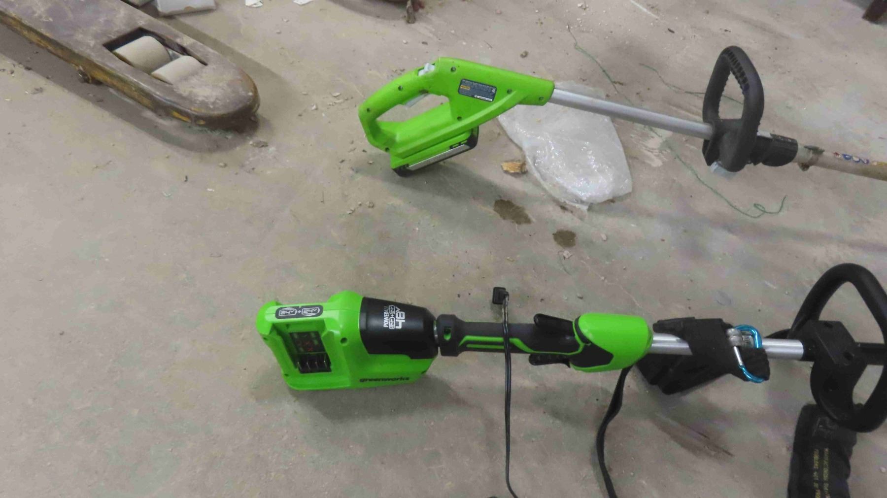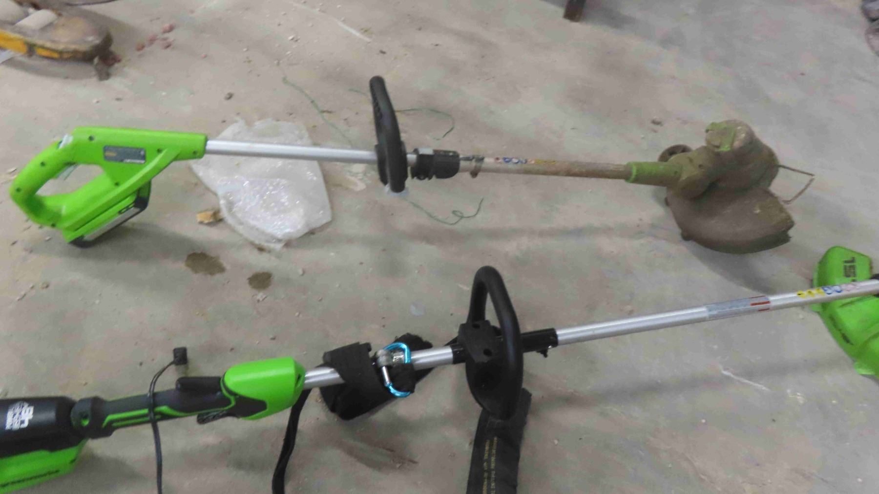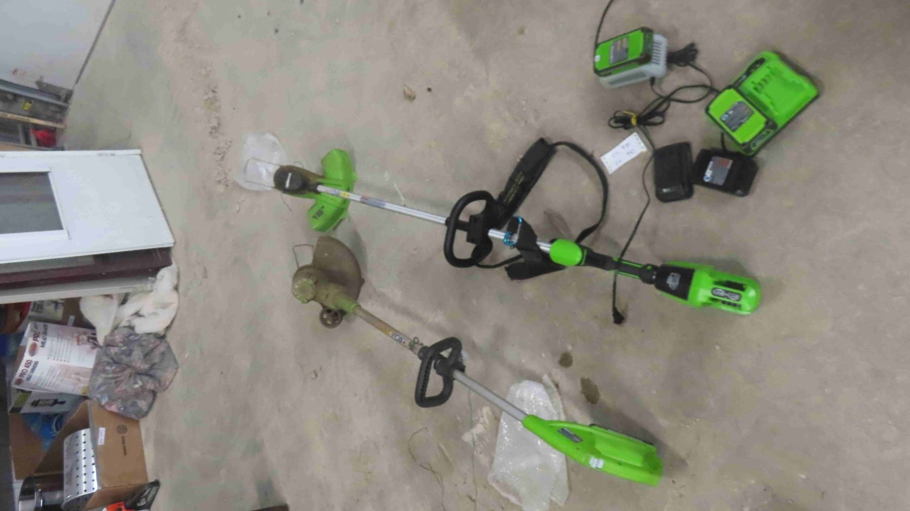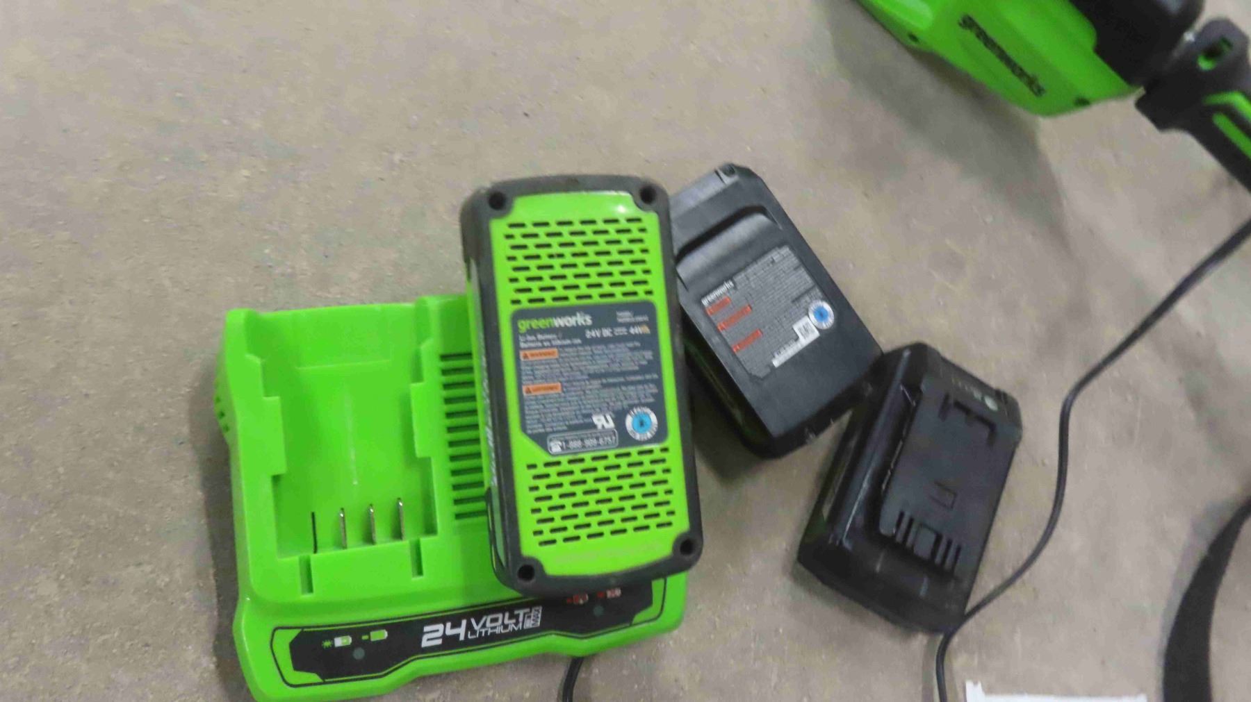 2 Greemworks 24V Grass Trimmers, 5 Batteries & 2 Chargers