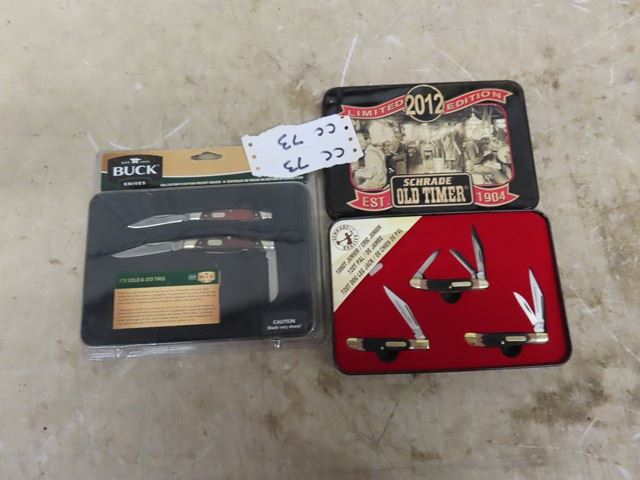 2 Gun Gift Sets in Case ; Schrade Old Timer with 3 Knives & Buck with 2 Knives