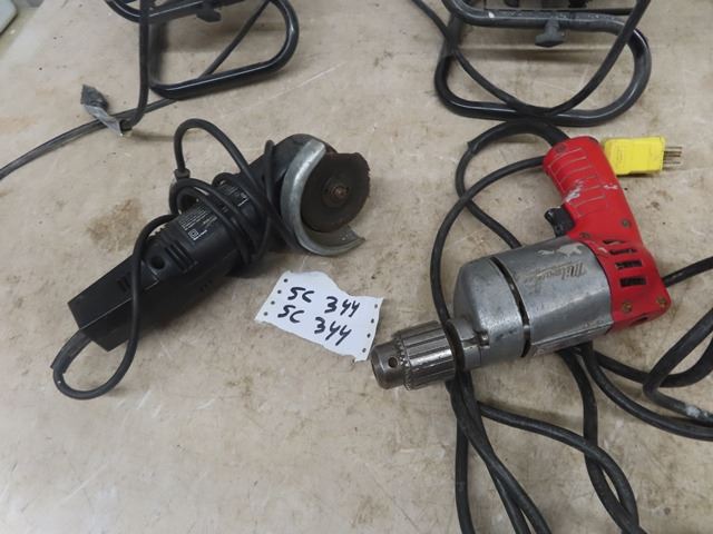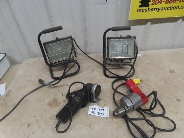 2 Halogen Lights, and Power Milwaukee Drill Angle Grinder