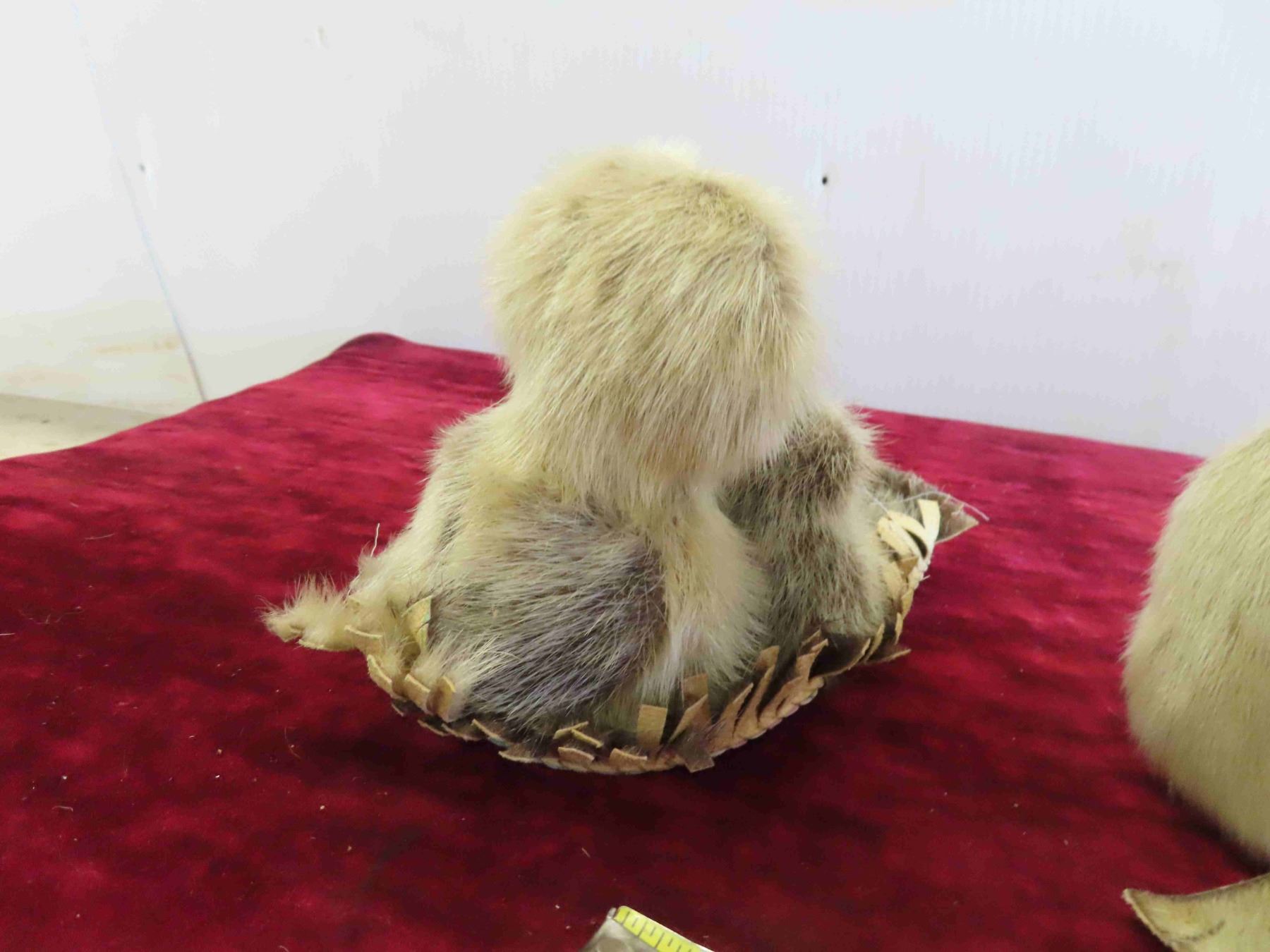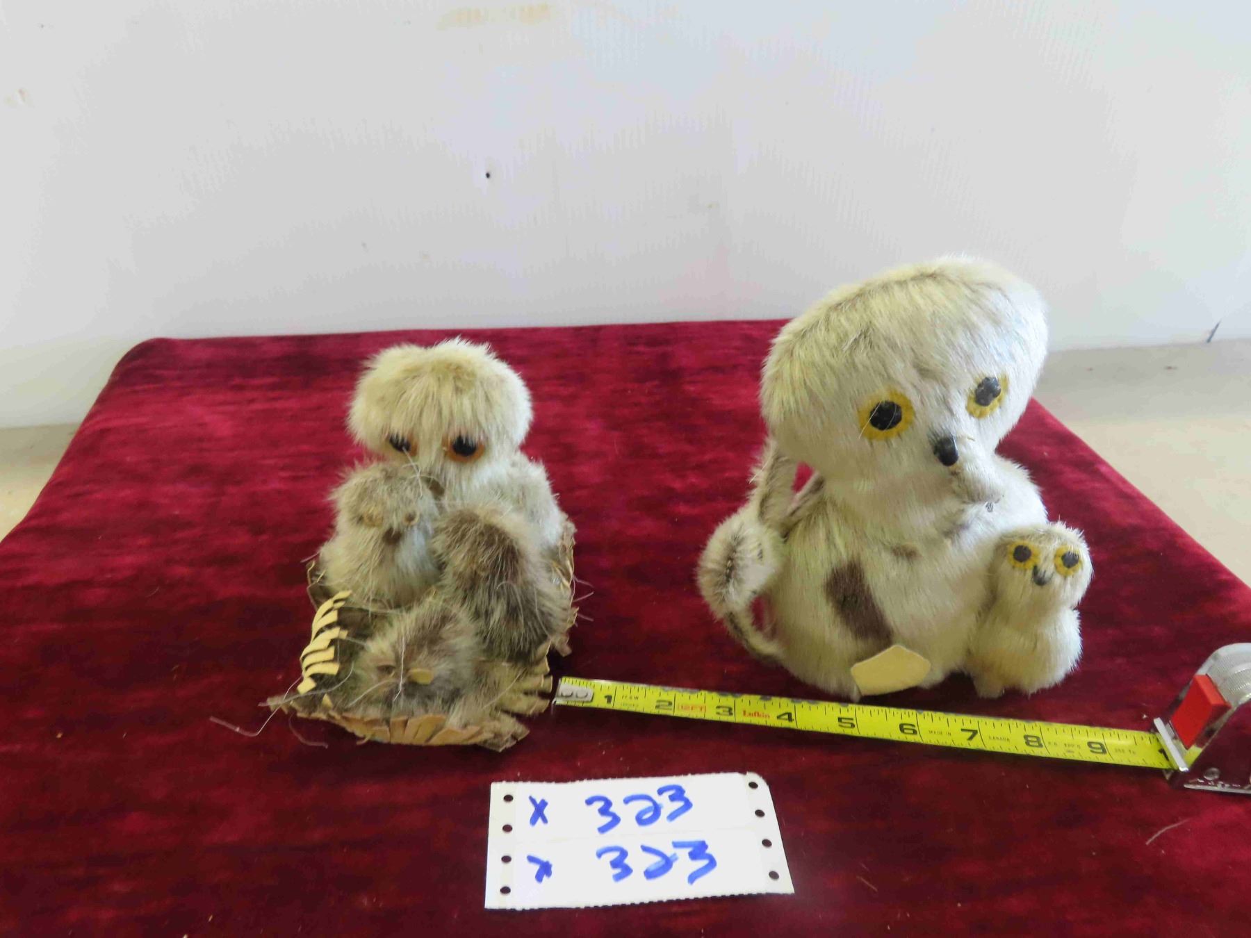 2 Hand Crafted Inuit Owl Family Made from Seal Hide