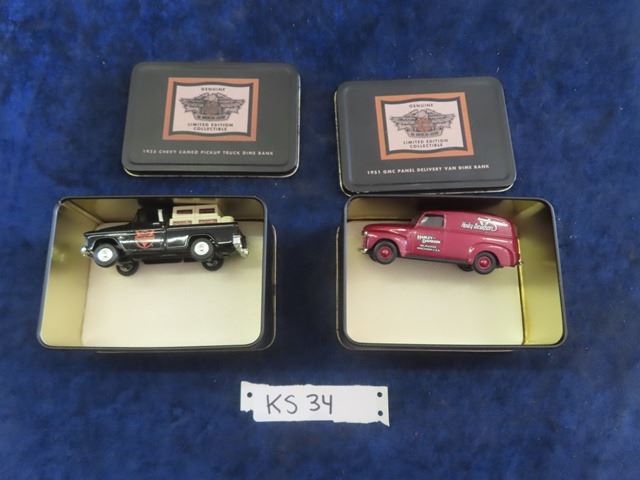 2 Harley Davidson Collectible Dime Banks 1955 Chevy Cameo Pick Up + 1951 GMC Panel Delivery Van