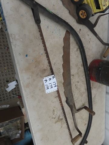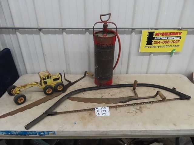 2 Hay Knives, Buck Saw, Tonka Grader, Pump Style Fire Extinguisher