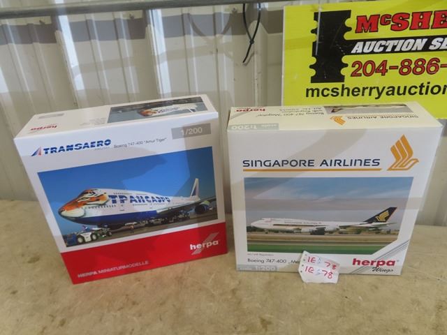 2 Herpa Die Cast 1/200 Scale Model Planes with Box Like New Condition
