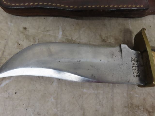 2 Hunting Knives - Both with Holsters ; Schrade USA 10" & ? Spain 10.5"