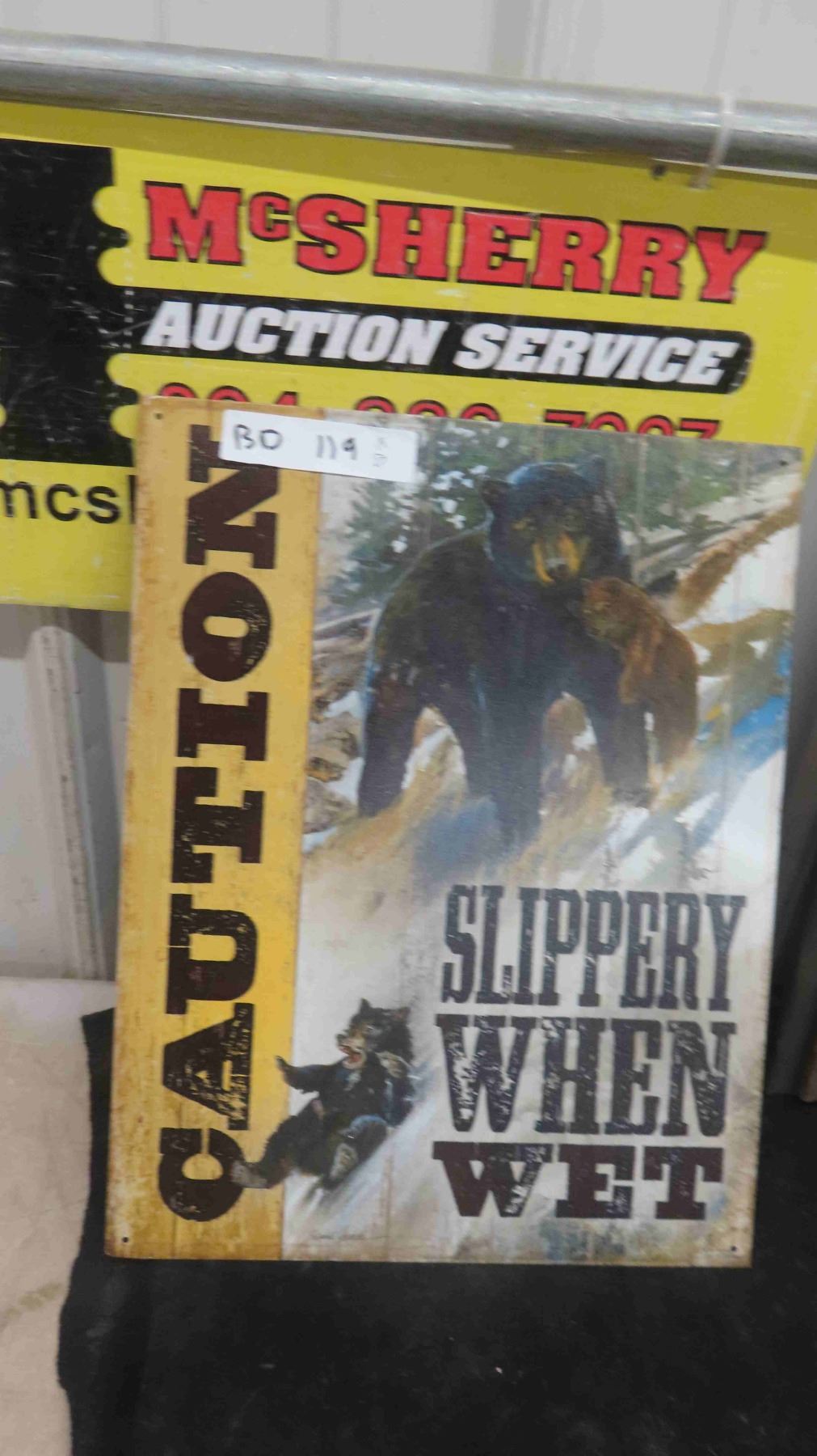 2 Hunting Lodge Cabin Signs: Wood Carved Moose Creek Lodge 18'' x 16'' , Tin Bear Sign 16'' x 12'' - Both Great Condition