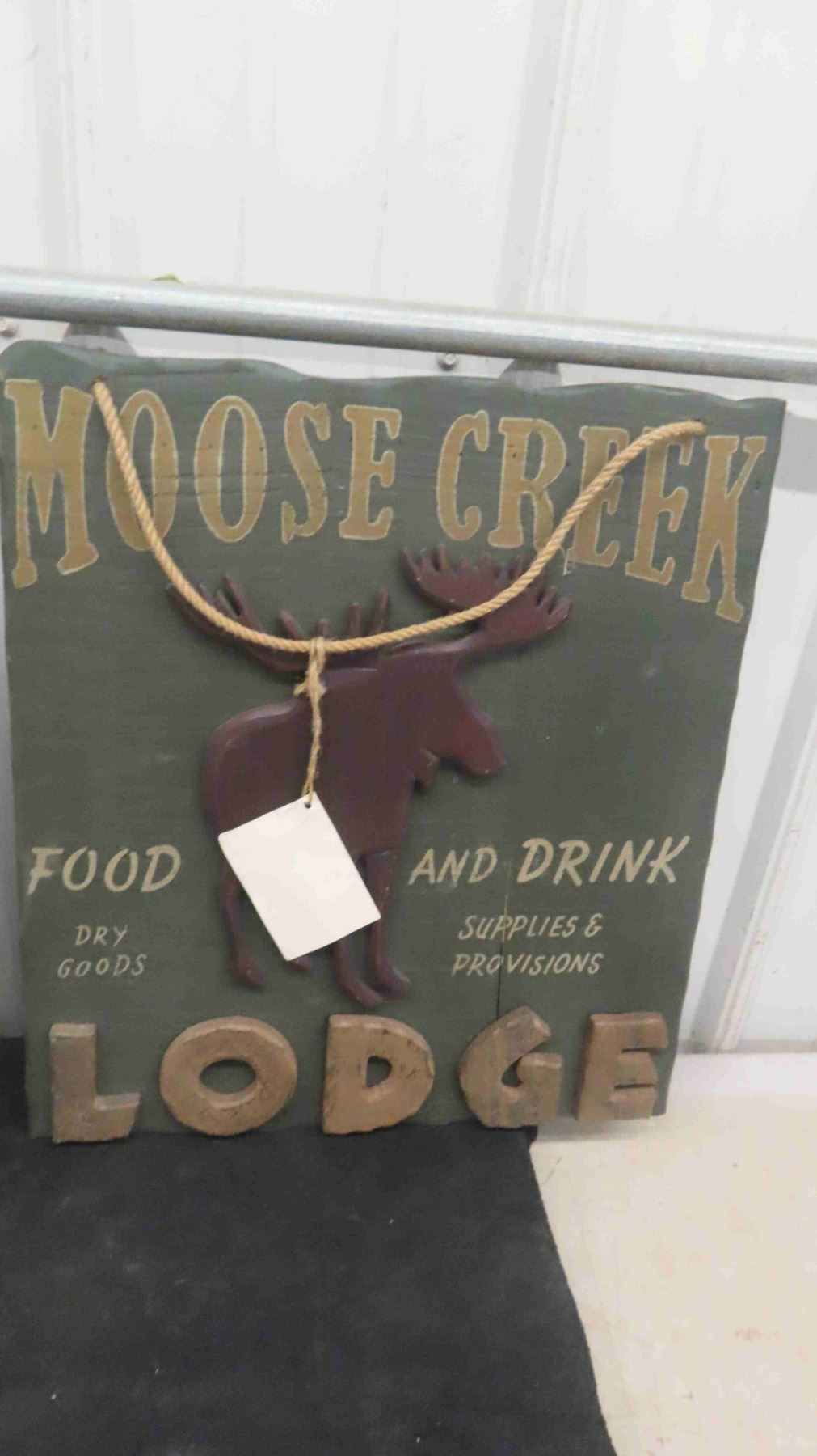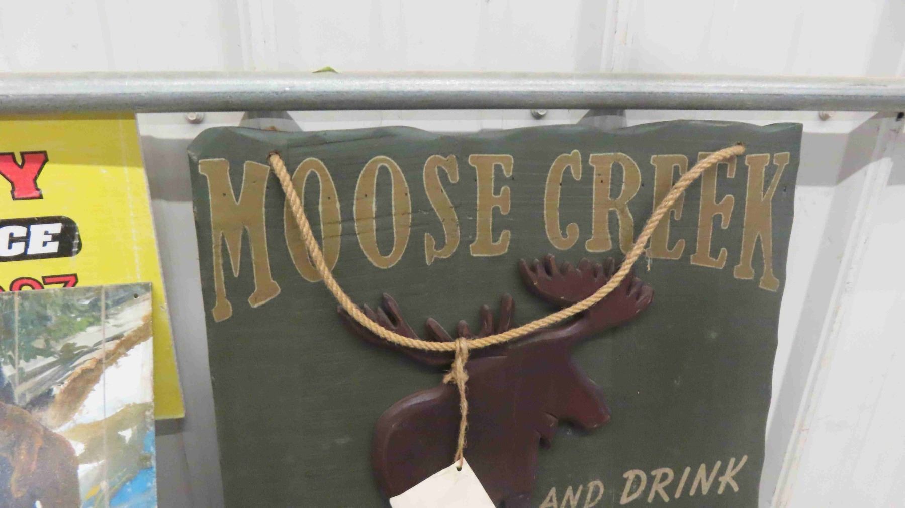 2 Hunting Lodge Cabin Signs: Wood Carved Moose Creek Lodge 18'' x 16'' ,