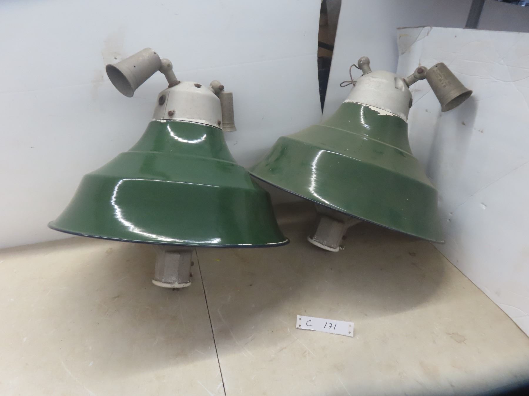 (2) Industrial Exterior Enamel & Cast Lights 20'' Diam.
