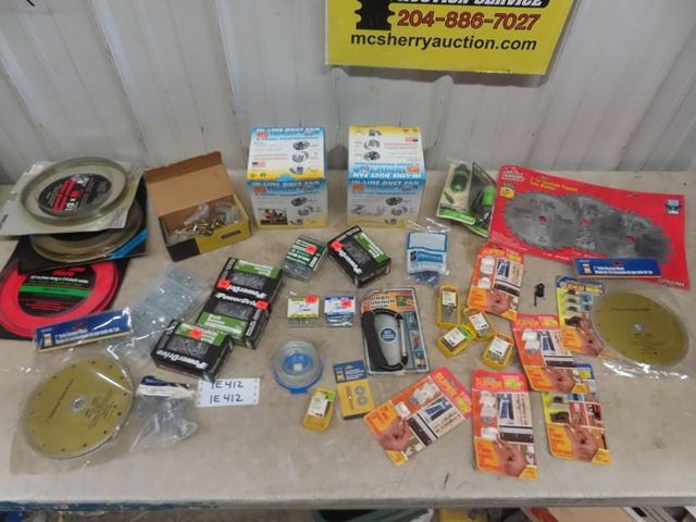 2 Inline Duct Fans, Misc. Screws, Super Klip Hangers, Band Saw Blades, 71/4" Framing Blades, 7" Diamond Turbo Blade