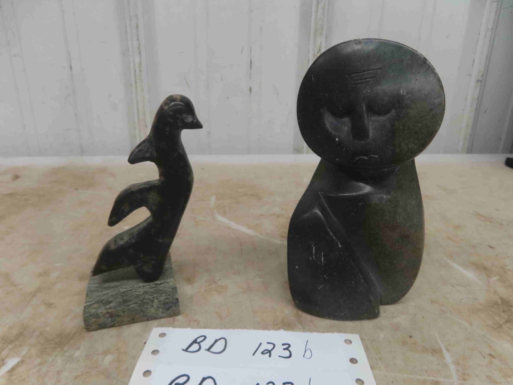 2 Inuit Soapstone Bird + Human Figure : 6" & 5"