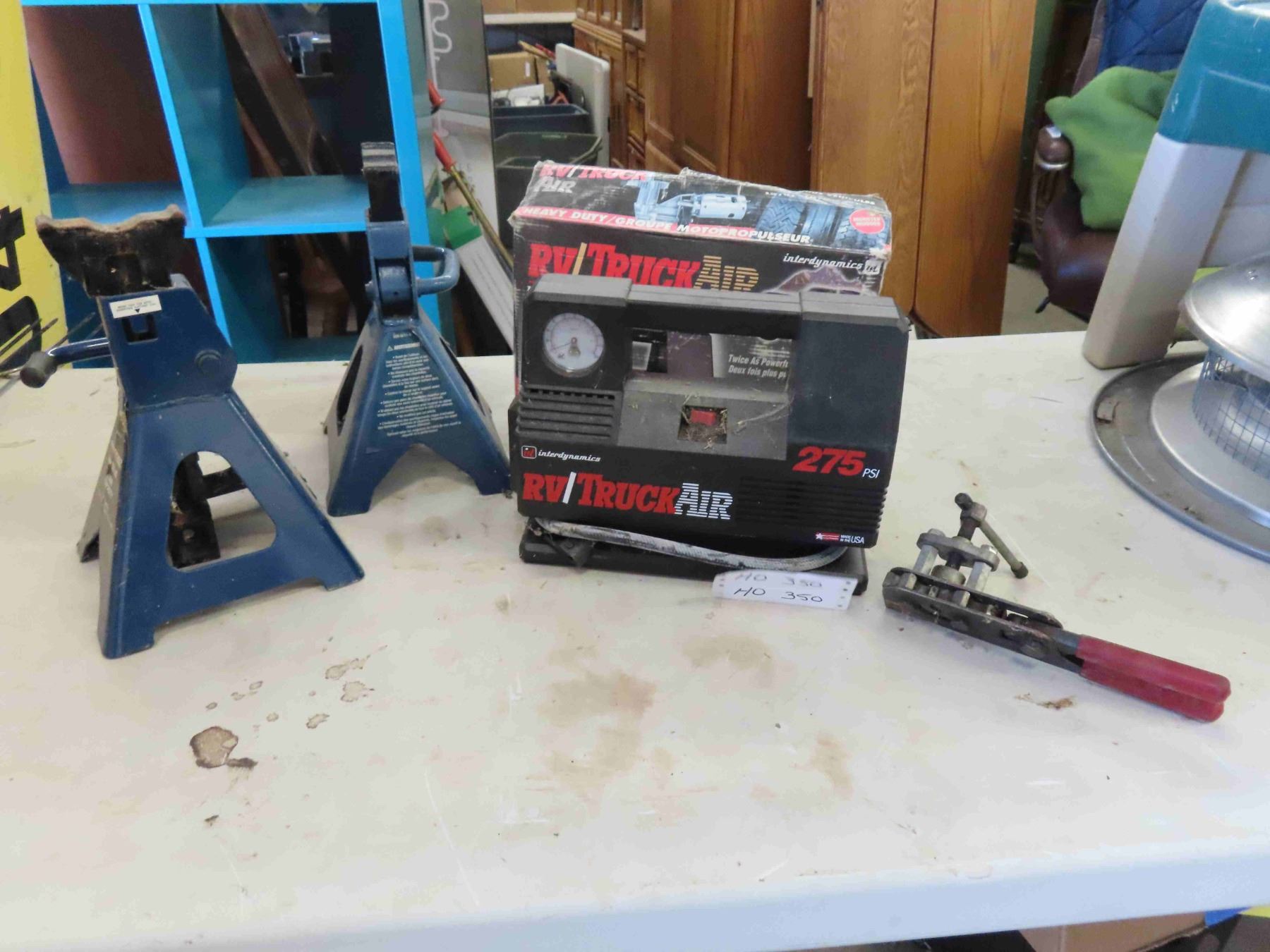 2 Jack Stands , Tube Flaring Tool , 12V Air Compressor