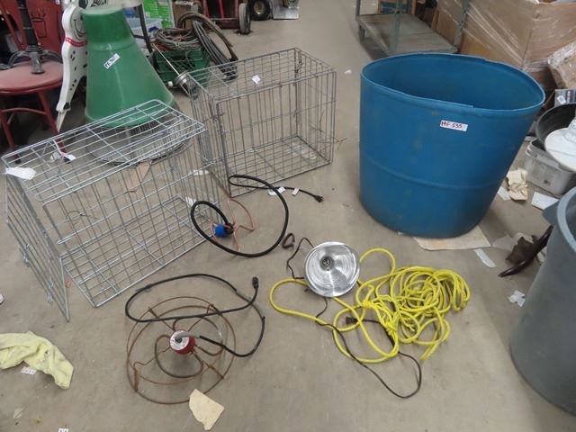 2 Kennels 20" x 24" x 14" & Poly Water Bin/Barrel - Approx 20 Gal, & Water Heaters