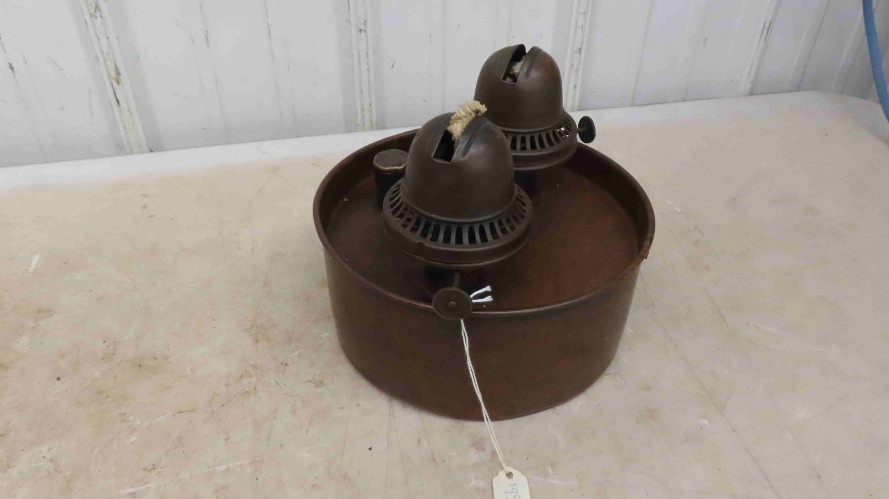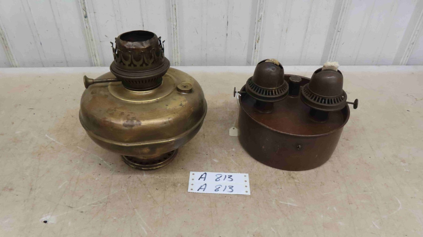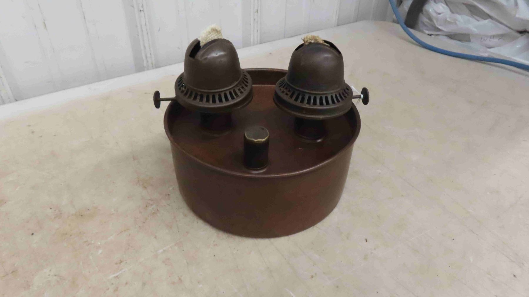 2 Kerosene Lanterns - 1 Copper Double Burner, 1 Brass - No Chimneys