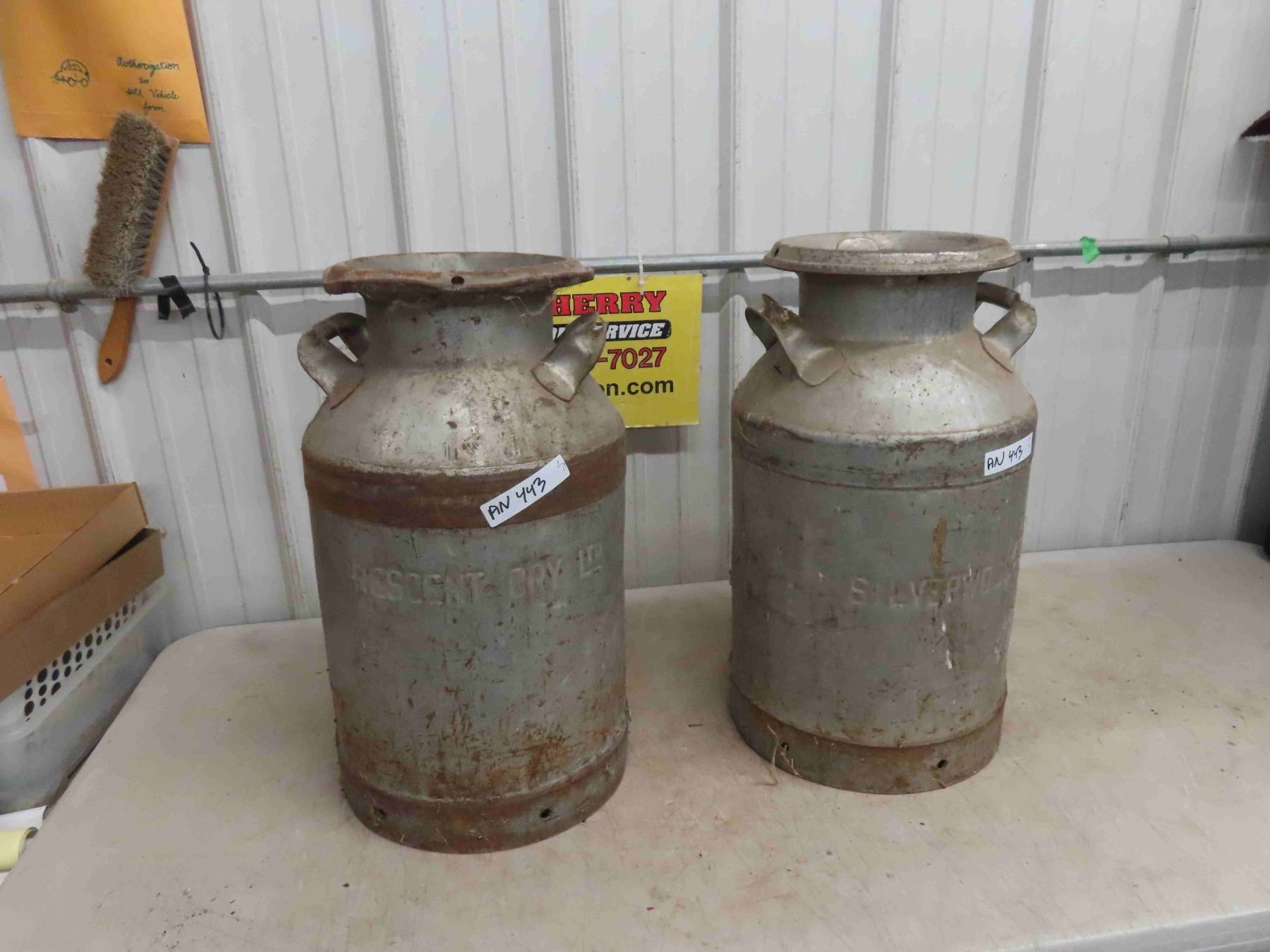 2 Labelled Cream Cans (1) Crescent, (1)