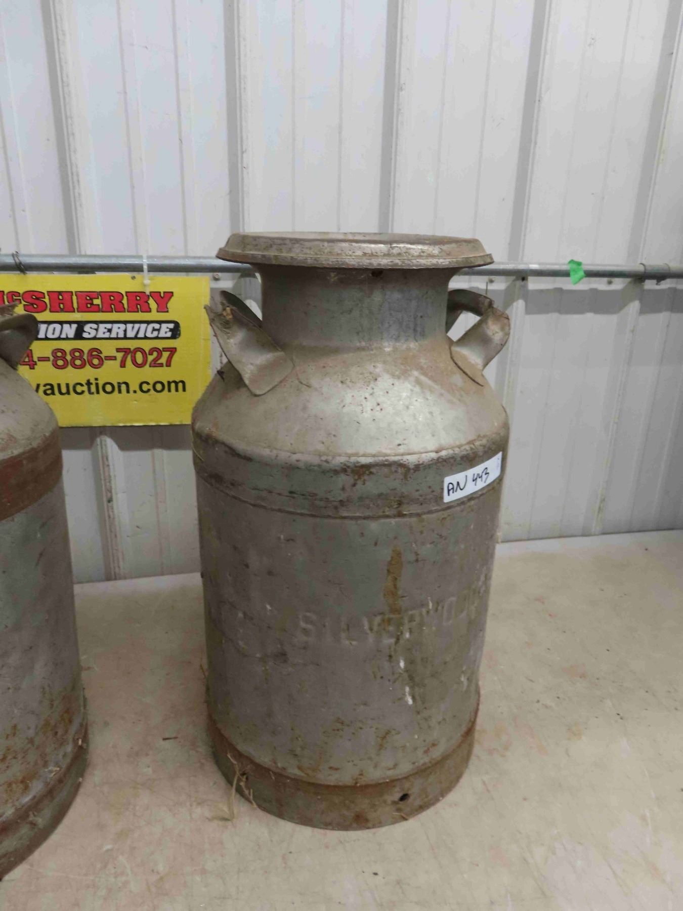 2 Labelled Cream Cans (1) Crescent, (1) Silverwoods