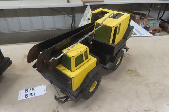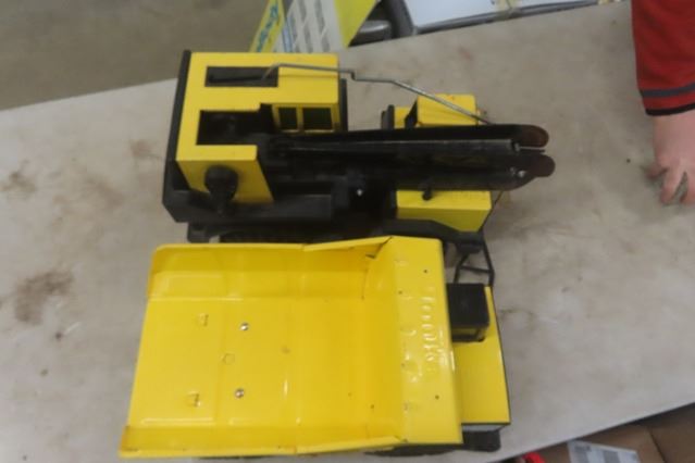 2 Large Pressed Metal Tonka Toys- Dump Truck, Crane Truck