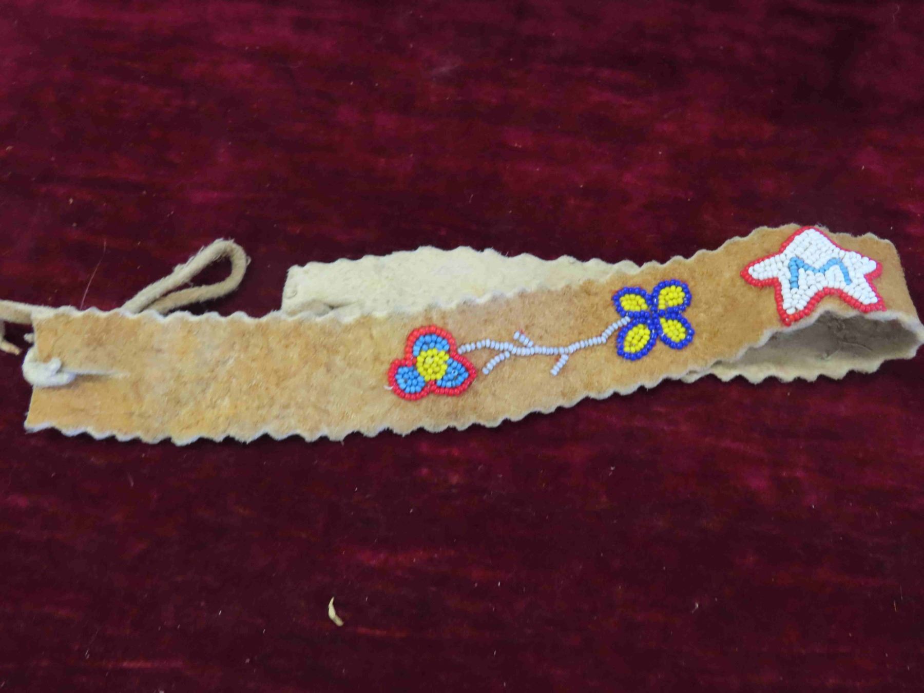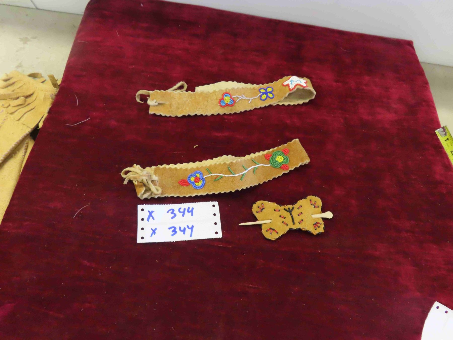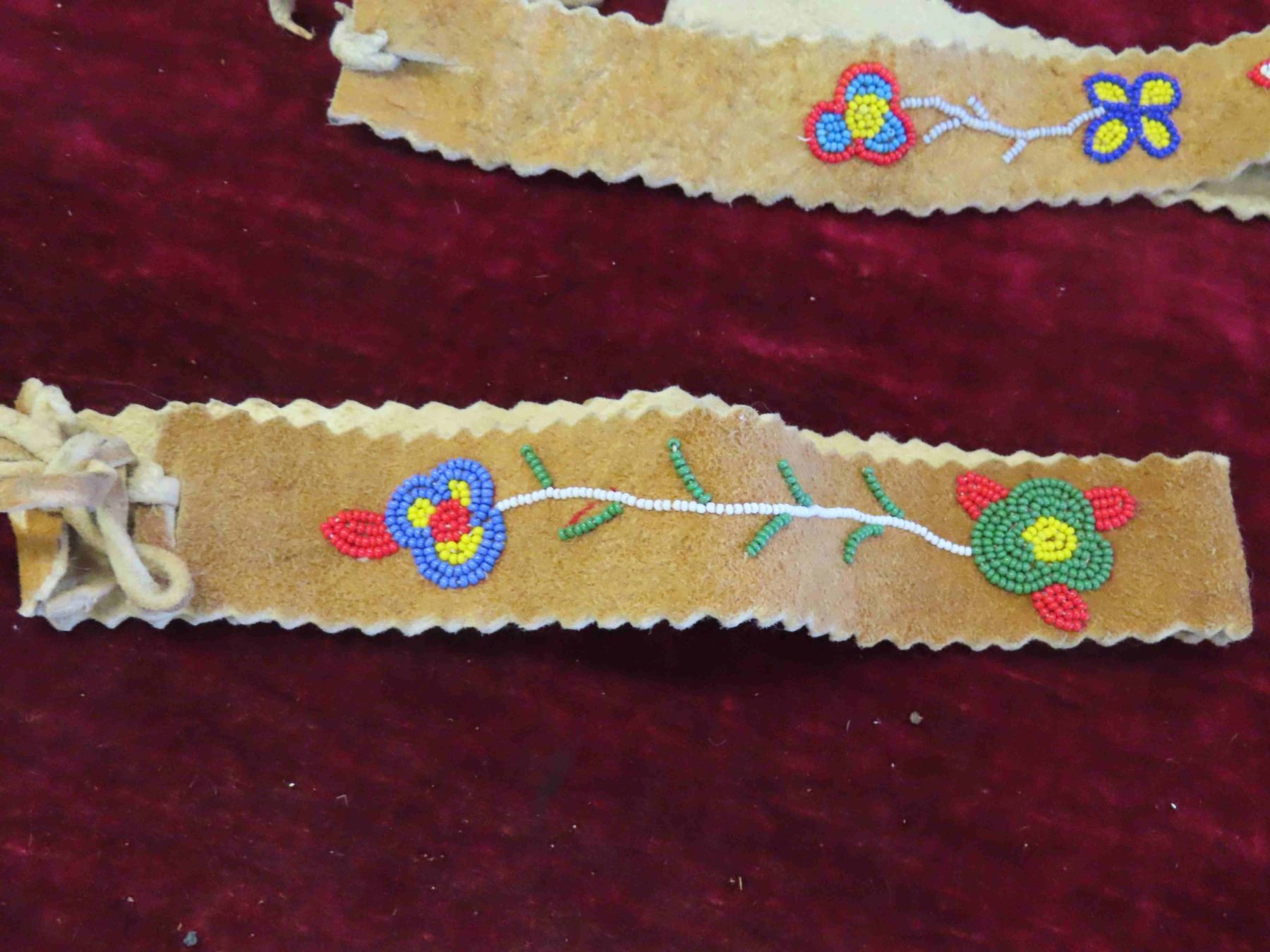 2 Leather Beaded Head Bands 1 Hair Bow - All Hand Crafted