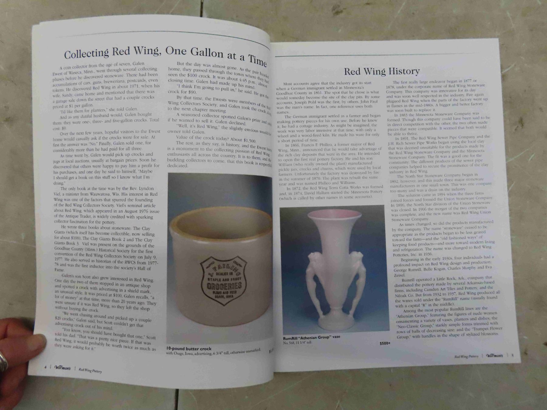 2 Like New Books of Warmans Red Wing Pottery 2005 and Warmans Roseville Pottery 2004 Identification and Price Guides