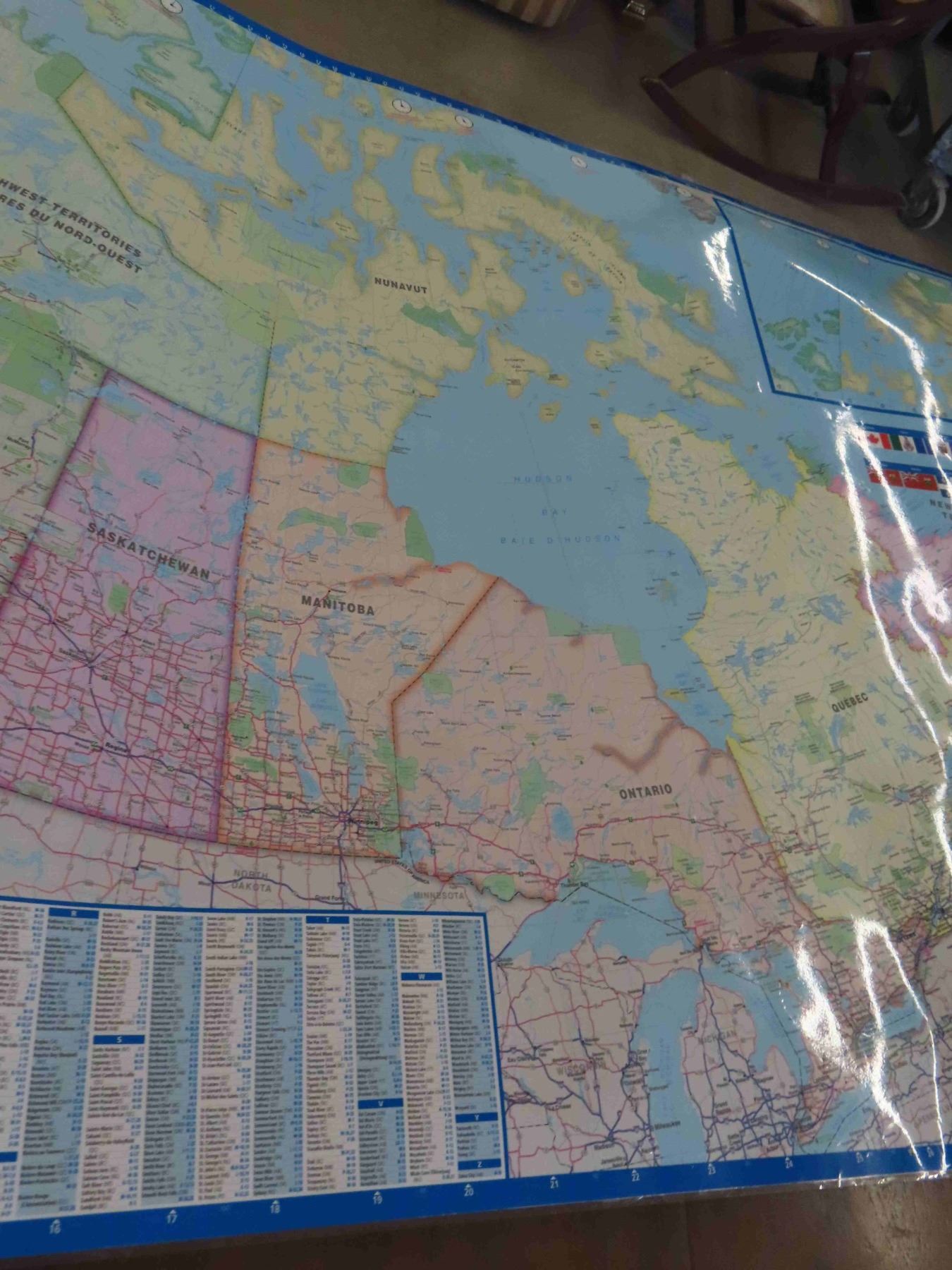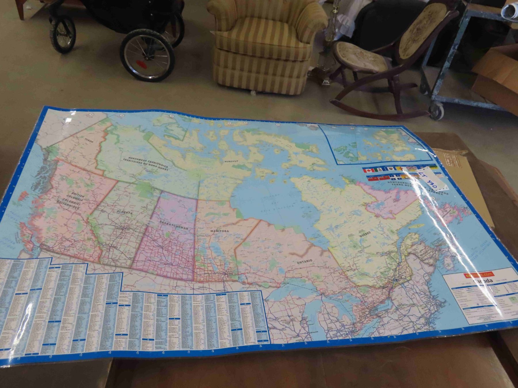 2 Magnetic White Boards 36'' T x 24'' W , Large US Map 50'' x 40'' with State Flags, Large Plastic Map of Canada 34'' x 40'' - Very Fine Condition