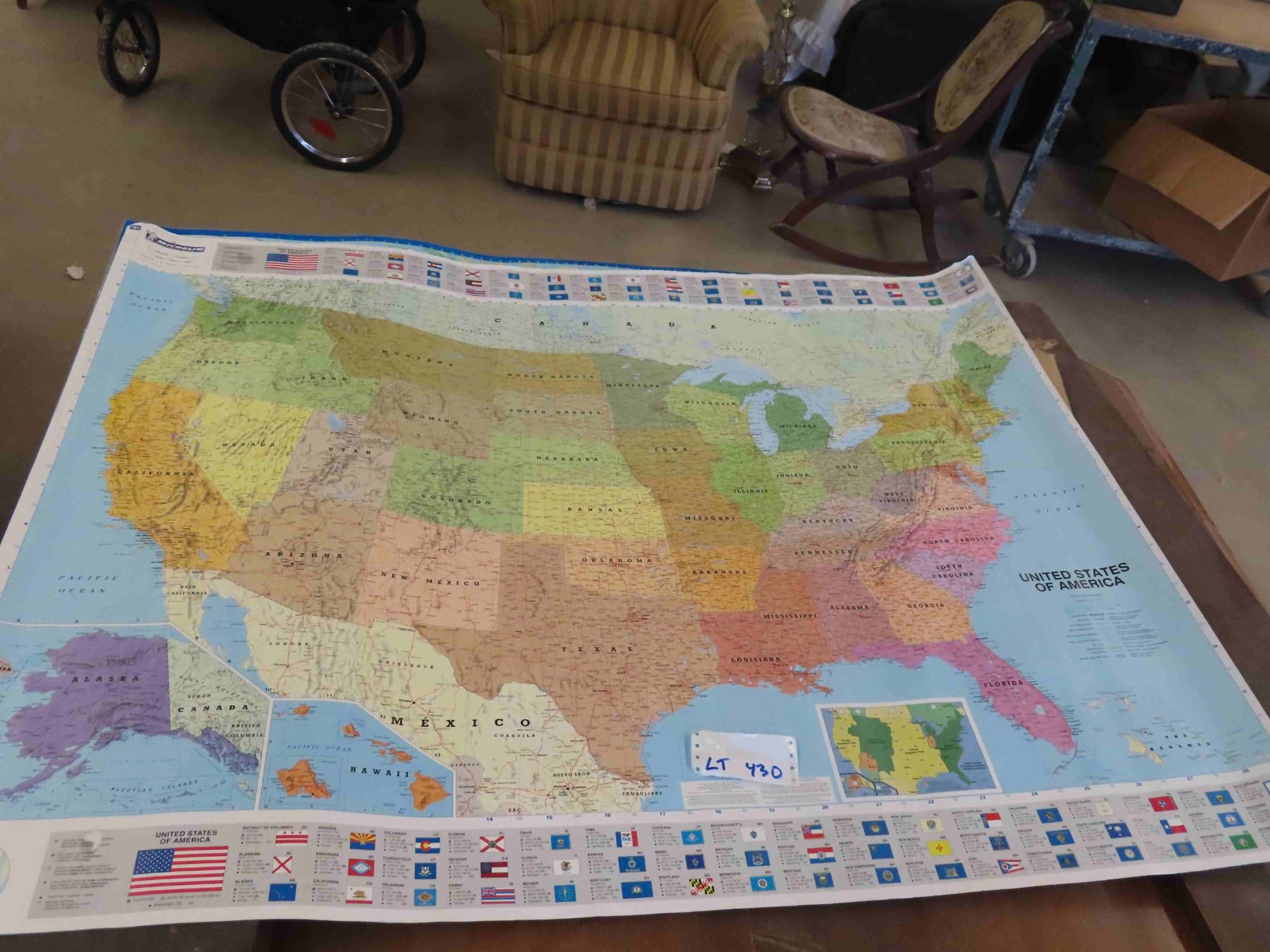 2 Magnetic White Boards 36'' T x 24'' W , Large US Map 50'' x 40'' with State Flags,